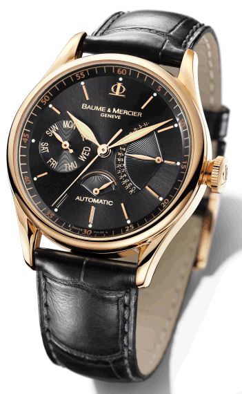 В данном случае мы имеем дело с ограниченной серией из 177 пронумерованных экземпляров - в честь 177-й годовщины Baume & Mercier. Classima Executives Red Gold с автоматическим механизмом в корпусе из 18-каратного розового золота содержат несколько интересных и традиционных для Baume & Mercier функций, в том числе ретроградный календарь, индикатор дней недели и индикатор запаса хода. Довольно крупный (39 мм) круглый корпус навевает ассоциации с ретро, однако благодаря накладным родиевым меткам на черном циферблате дизайн выглядит динамичным и современным.