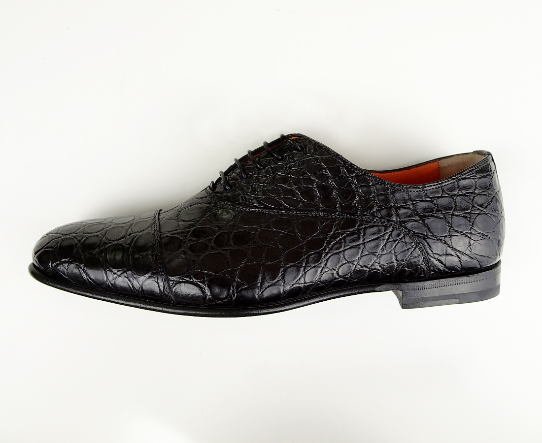 SANTONI роскошные мужские туфли, черный КРОКОДИЛ, р.41-41,5!
