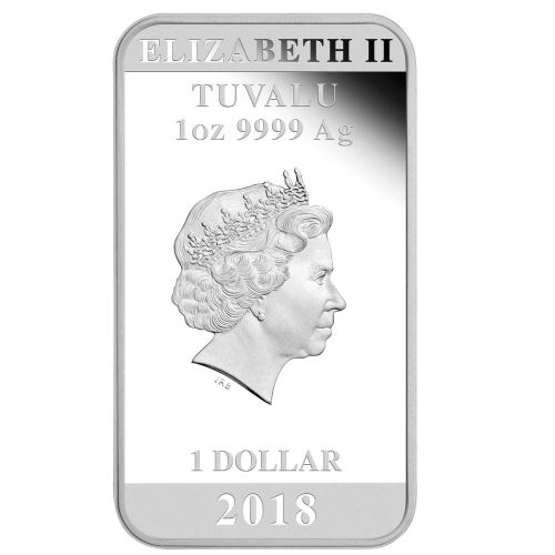 На аверсе монеты отчеканен портрет Ее Величества королевы Великобритании Елизаветы II работы Иена Рэнк-Бродли. Легенда: «ELIZABETH II», «TUVALU», «2018», «1 DOLLAR», и характеристики металла - «1 oz 9999 Ag».