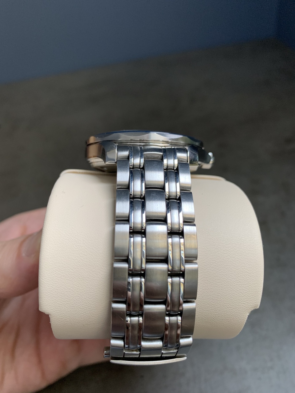 Часы в отличном состоянии, никогда не вскрывались и не полировались, ход +4 сек./сутки. Никогда не падали, не плавали, не ронялись. Естественные следы носки присутствуют, но никаких глубоких царапин и вмятин, стекло и безель в идеале.