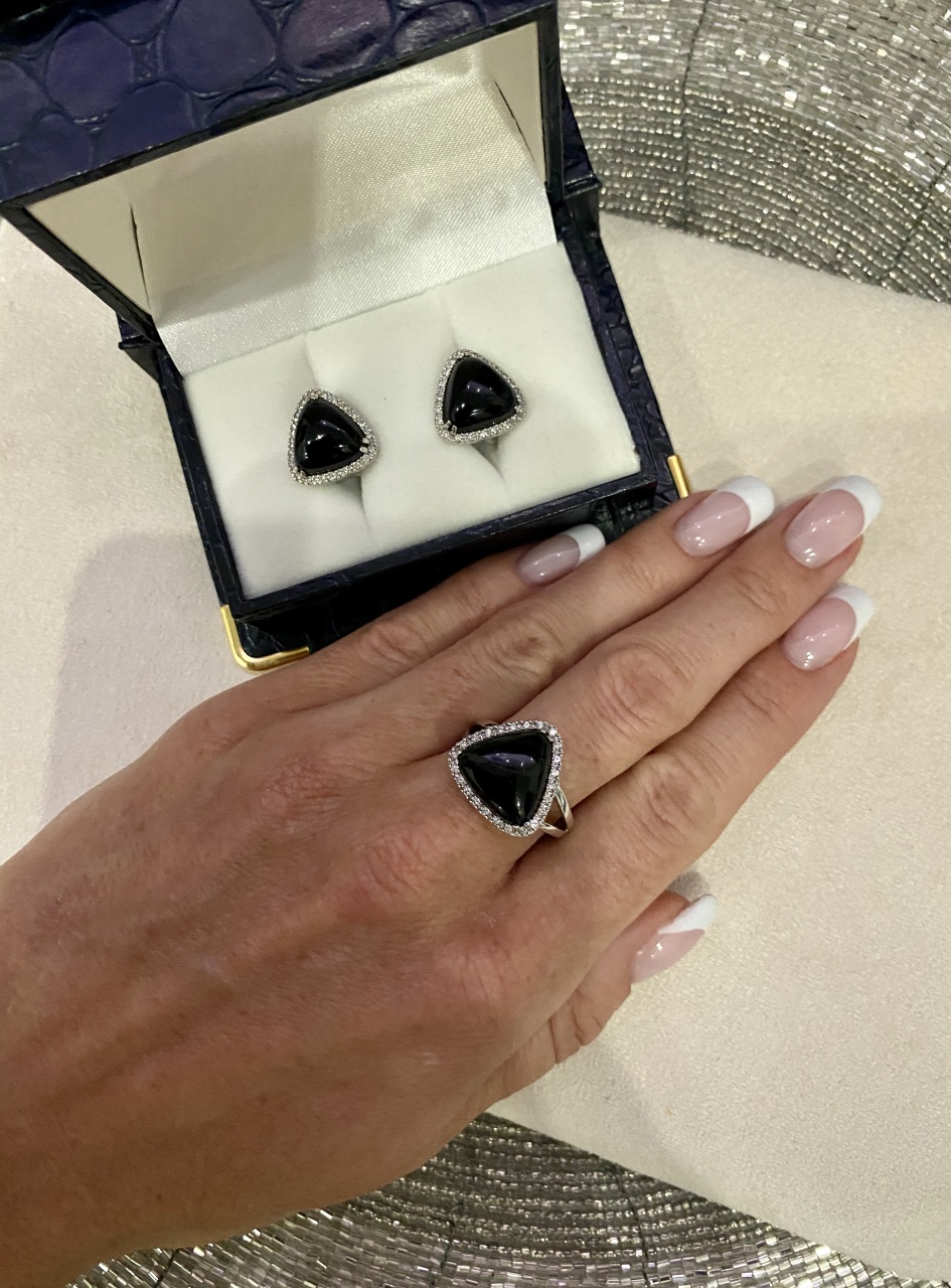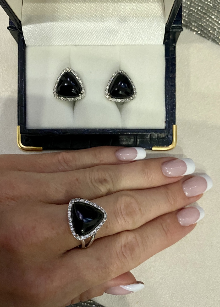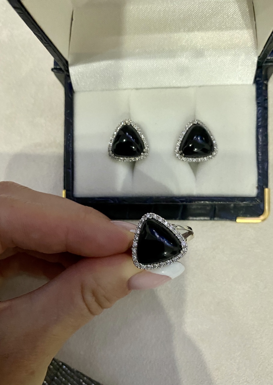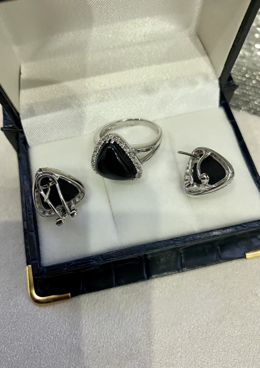 КРАСИВЫЙ КОМПЛЕКТ С БРИЛЛИАНТАМИ И ОНИКСАМИ , ТОРГ/ОТПРАВКА