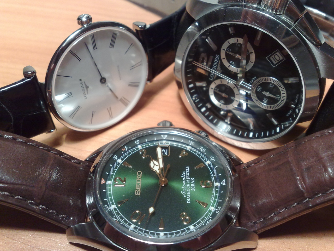 Longines La Grande L4.708.4.11.2, Longines Conquest Chronograph Quartz L3.660.4.56.0, Seiko Automatic Alpinist SABR017. Раньше владел: Louis Erard La sportive classique Automatic 78410AA01M.