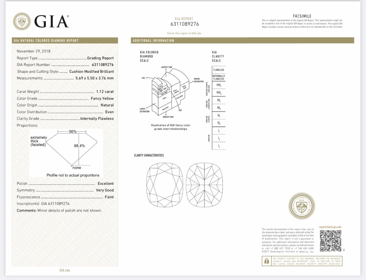 Подвеска с бриллиантом Fancy Yellow / Internally Flawless 1,12 ct