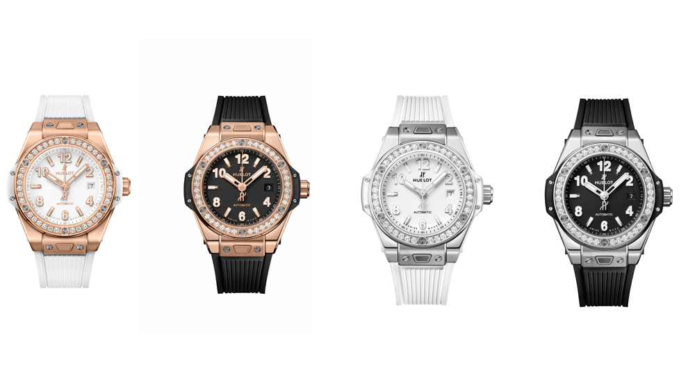 Хронограф, доступный из нержавеющей стали с сатинированной отделкой или 18-каратного «королевского золота», имеет корпус размером 33 мм на 10,55 мм, который идеально подходит для тонких запястий, и безель, инкрустированный 36 бриллиантами. Циферблат доступен в черном или белом цвете, внутри калибр HUB1120 с автоподзаводом. Однако особенностью является сменный ремешок, который можно переключить за считанные секунды благодаря запатентованной и простой в использовании системе крепления «One Click». Ремешок, изготовленный из натурального каучука, доступен в различных цветах - электрик, малиново-розовый или терракотово-оранжевый, и это лишь некоторые из них, что означает, что вы можете сочетать свои часы с любым аутфитом. Цены от 12500 до 23000 US