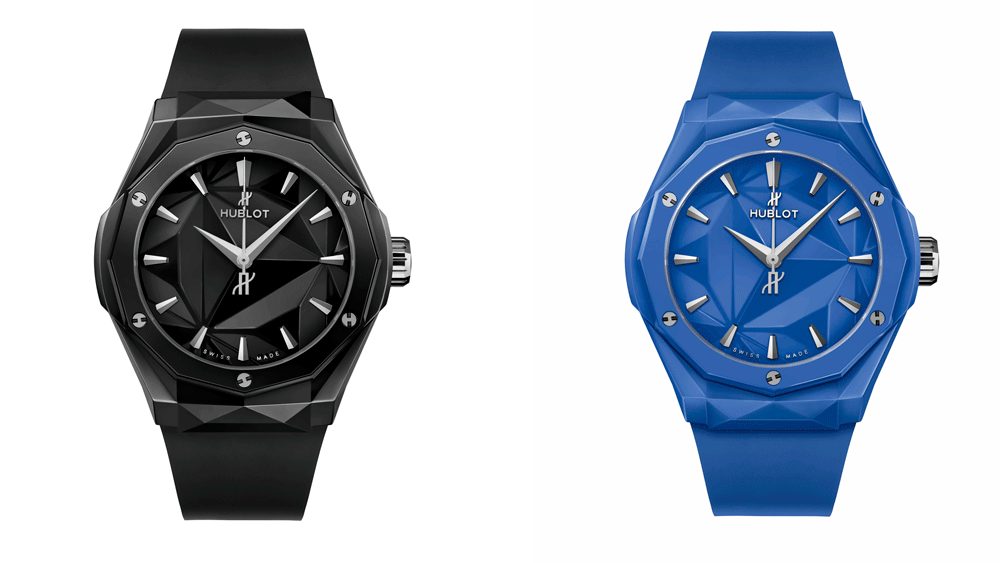 Рельефные углы и острые края были отличительной чертой часов Hublot Ричарда Орлински с тех пор, как он начал работать в часовом деле еще в 2017 году. Эти новые монохромные версии Classic Fusion Orlinski полностью покрыты керамикой, за исключением заводной головки и ремешка. Но в этих экспонатах заложено гораздо больше, чем только элегантная геометрическая форма. Внутри тонкого корпуса размером 40 мм на 11,10 мм находится калибр с автоподзаводом HUB1100, состоящий из 63 компонентов и 25 камней. Последняя версия часов за 13 600 US представлена в ярком синем и глянцевом черном цветах, которые напоминают цветовые коды, используемые в часовом каталоге Орлинкси XXL.