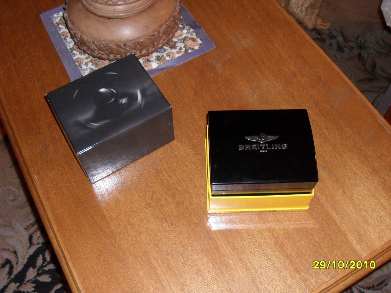 Часы куплены в июне 2008г. у официального поставщика Breitling в Санкт-Петербурге компании "Консул Северо-Запад". К часам идет полный комплект: сертификаты, паспорт, инструкции, вся упаковка, включая кожаный чехол и лаковую шкатулку. Все- как новое.