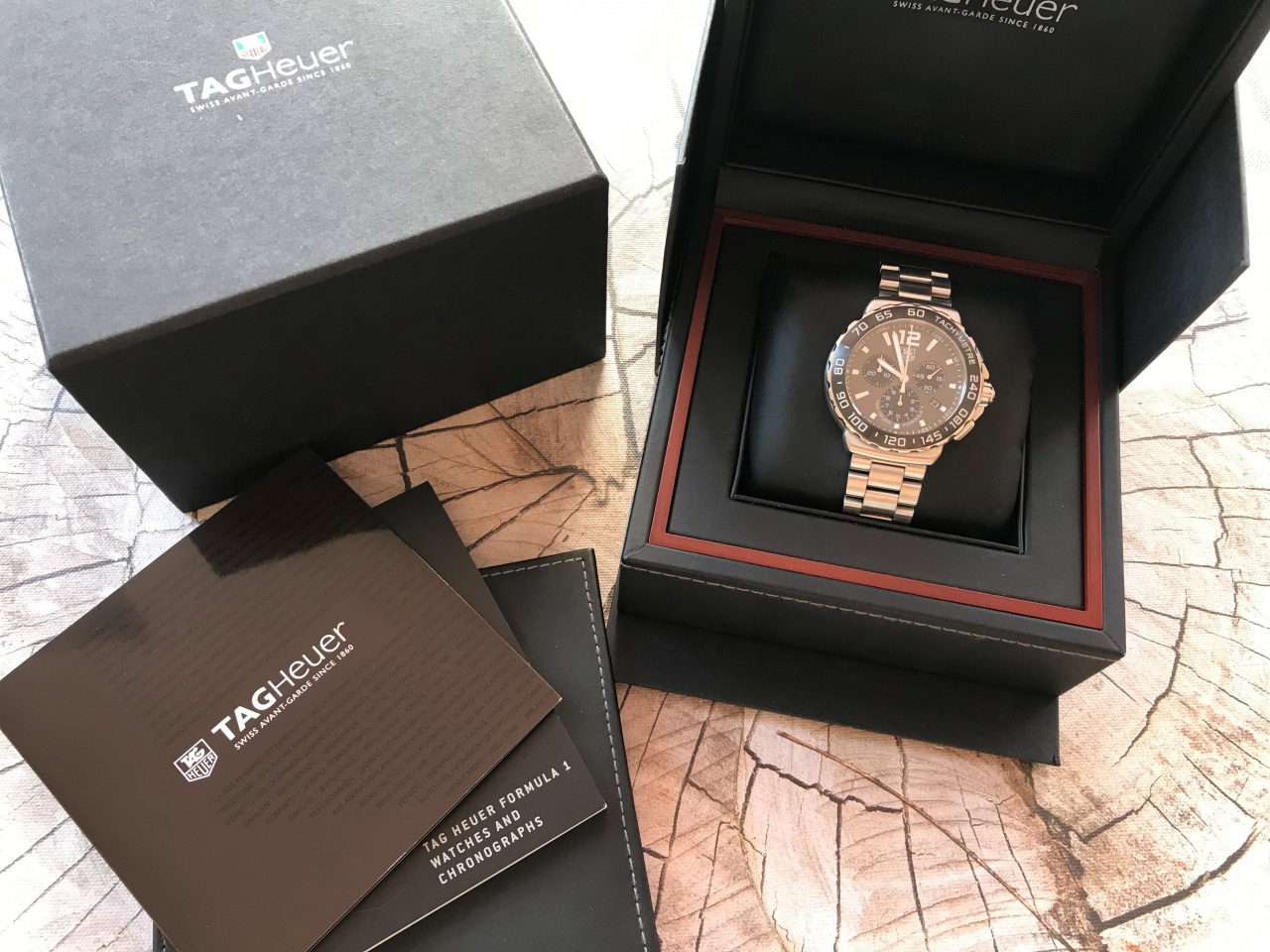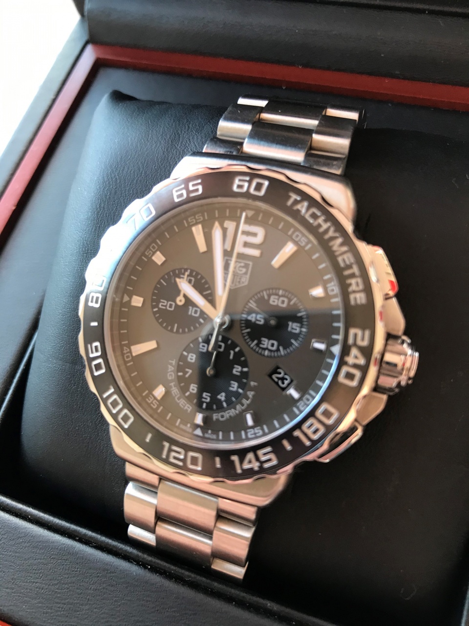 В наличии топовый, практичный хронограф Tag Heuer CAU1115.BA0858, флагман линейки F1. Состояние отличное. В комплекте: часы, коробка, шкатулка, чехол, инструкция, буклет.