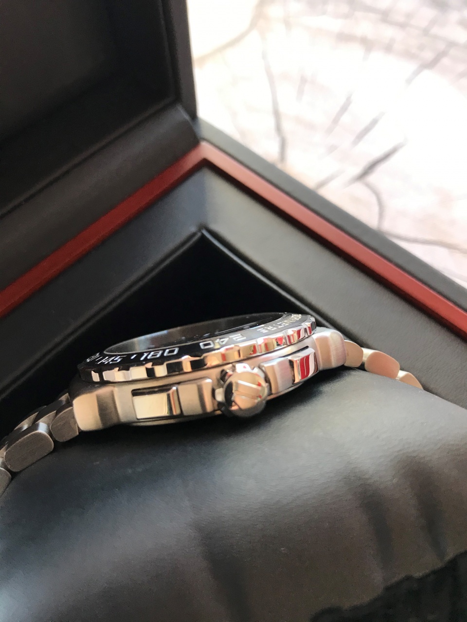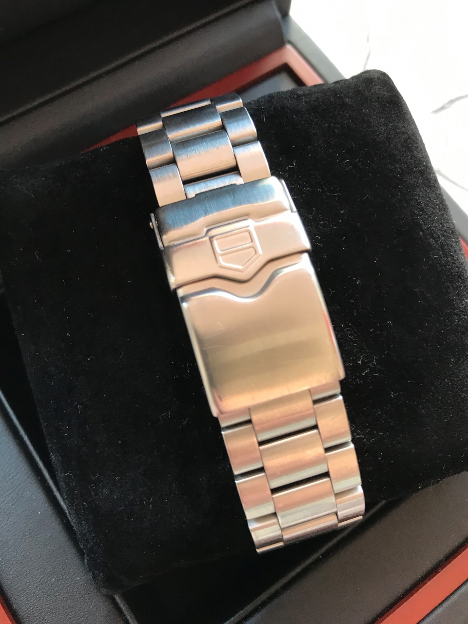 - Полированная стальная завинчивающаяся заводная коронка «Easy Grip» с рельефным щитом TAG Heuer