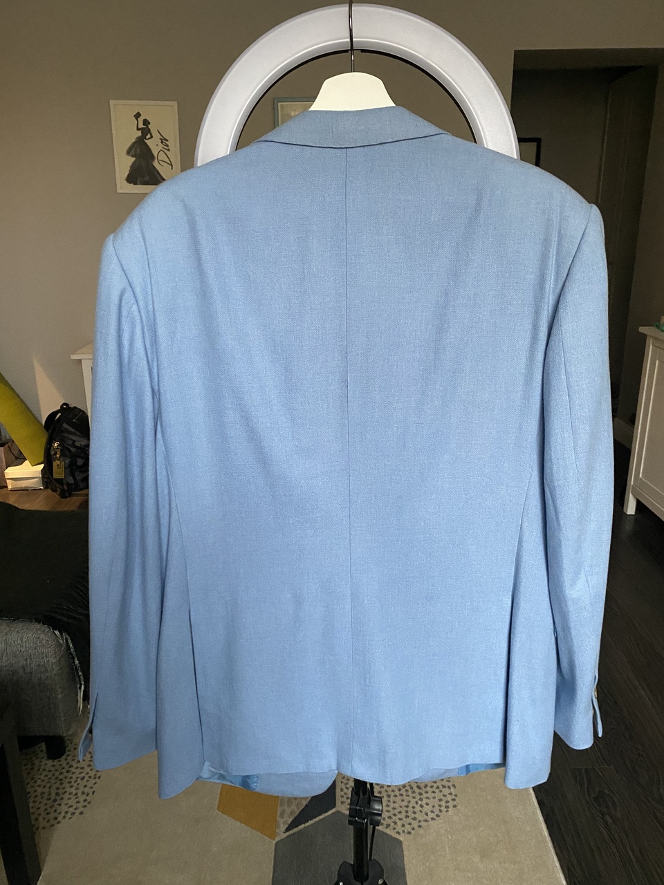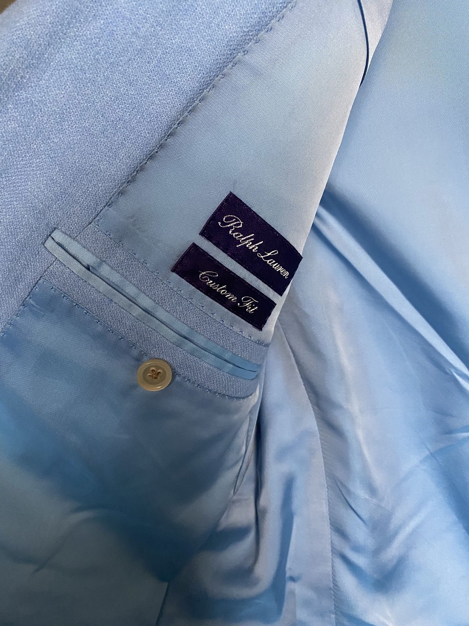 Представляю вашем вниманию прям жемчужину - пиджак/блейзер самой высокой линии Ralph Lauren - Purple Label, небесно-голубого цвета пиджак из 100% кашемира модели Drake. Ни грамма шерсти или шелка, никаких компромиссов. Он не тонкий, скорее всесезонный и там кашемира столько, что постригли, наверное, небольшое стадо коз