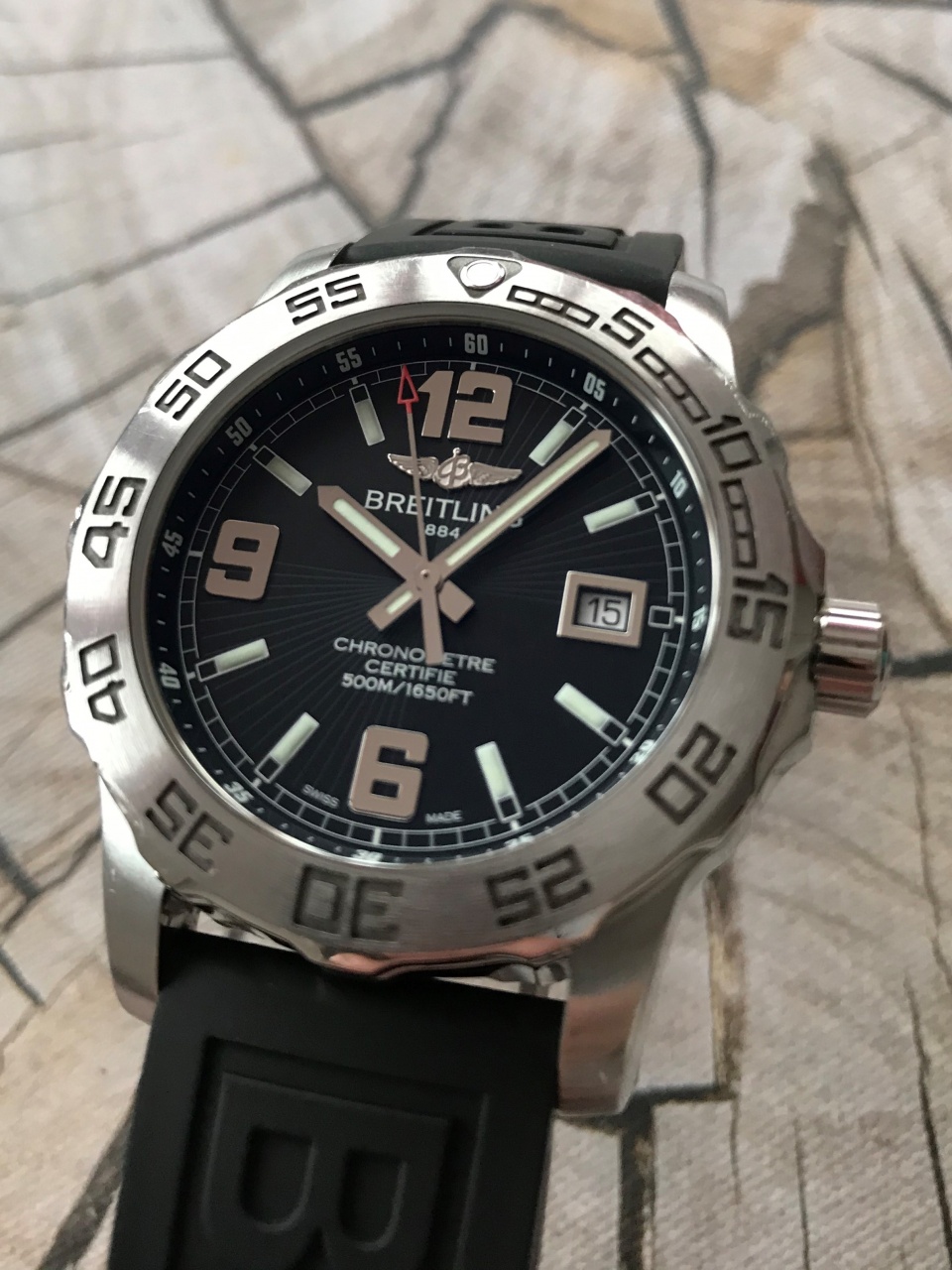 В наличии брутальный Breitling Colt реф. A7438710 в отличном состоянии. Присутствуют естественные следы эксплуатации, ничего критичного. Полный комплект.