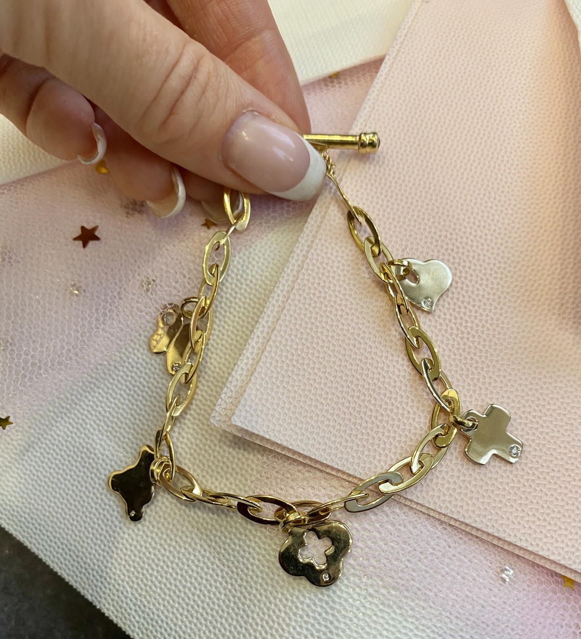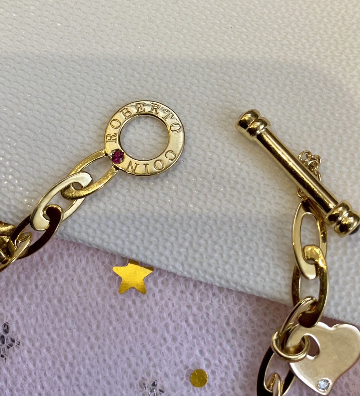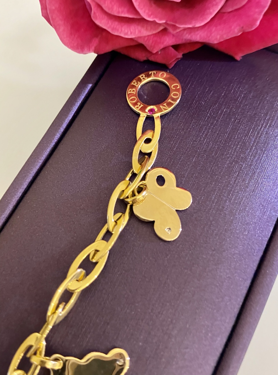 КРАСИВЫЙ БРАСЛЕТ ROBERTO COIN С ПОДВЕСАМИ , БРИЛЛИАНТЫ/РУБИН/САПФИРЫ, ТОРГ/ОТГ