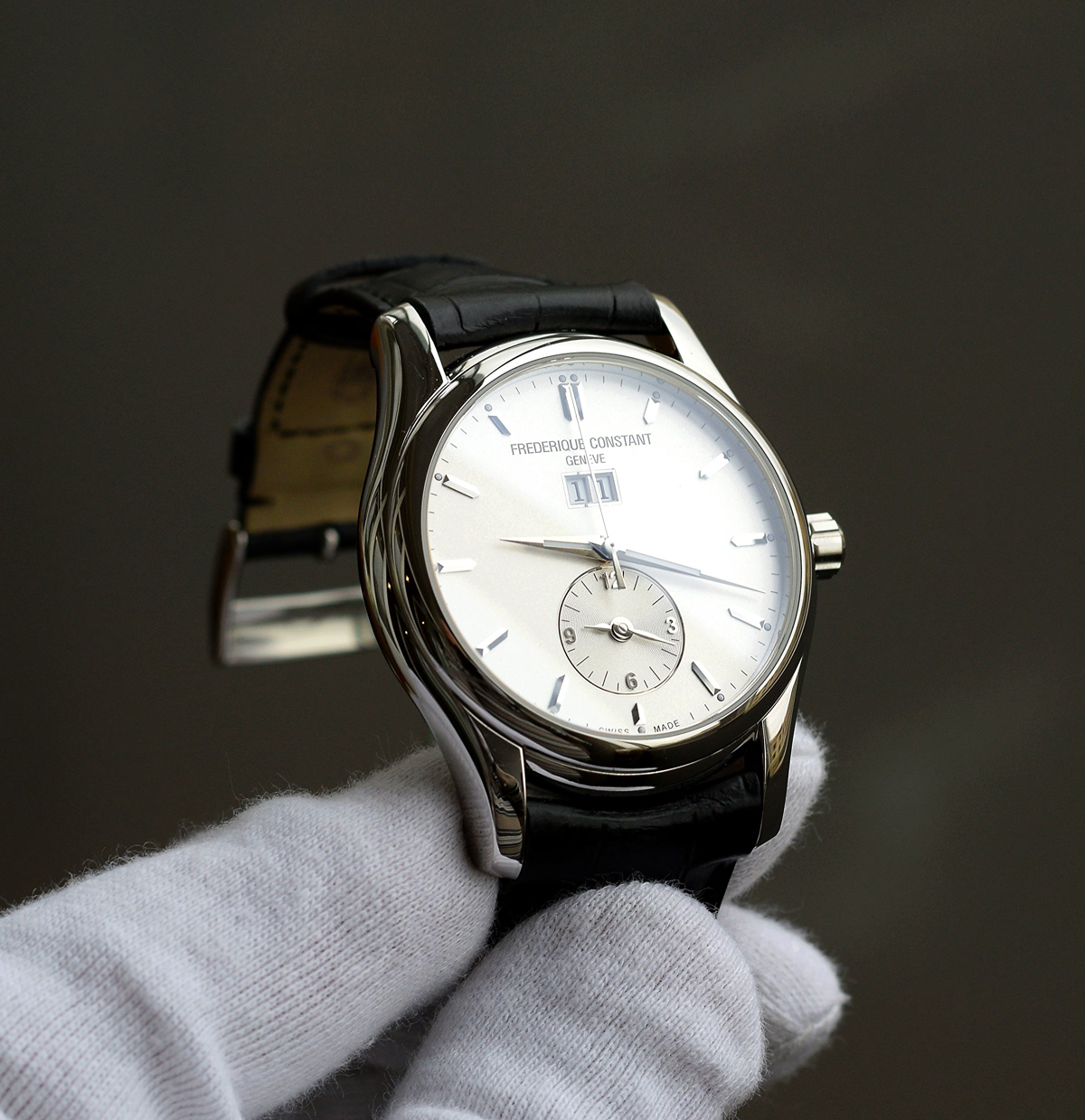Великолепные по качеству и красоте часы Frederique Constant премиум класса на мануфактурном калибре. Два времени. Большая двойная дата. Завинчивающаяся коронка. 100 метров. Двойной сапфир с антибликом.