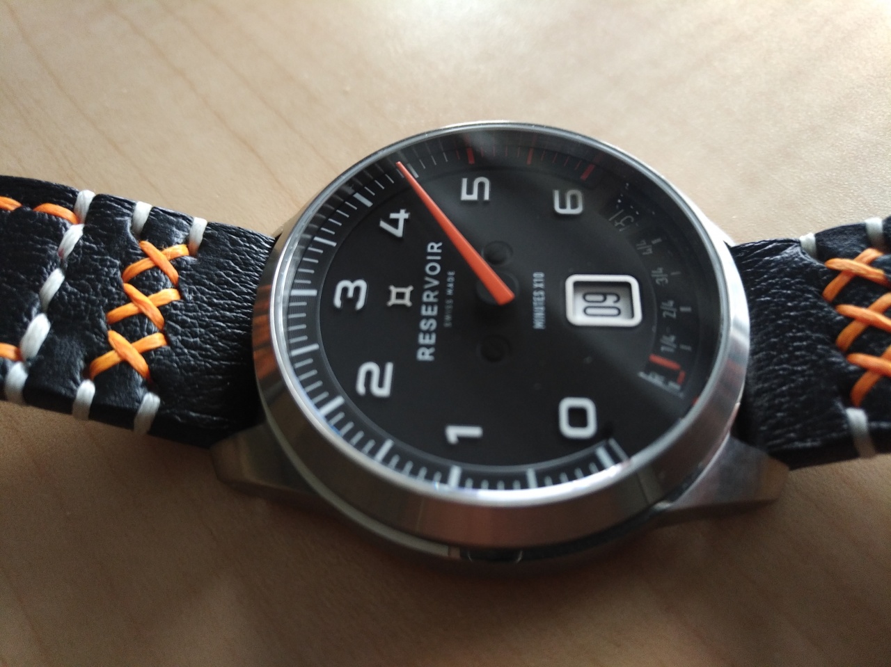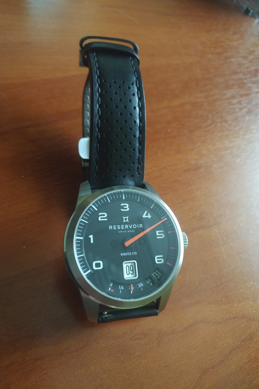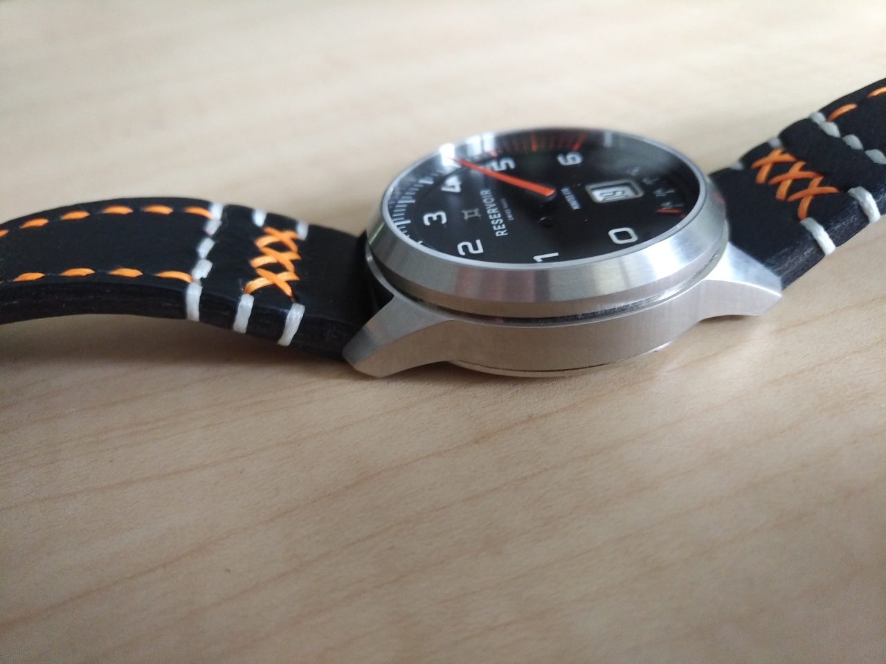 Дополнительно к двум родным ремешкам отдам ремешок ручной работы с оранжевой строчкой, идеально подходящий к циферблату (на фото).