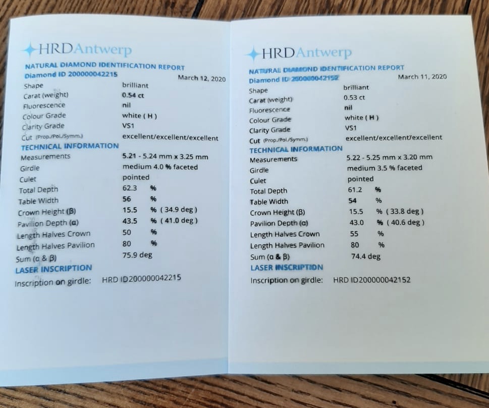 Серьги-пуссеты с бриллиантами 0,54 и 0,53 карат (сертификаты HRD)!