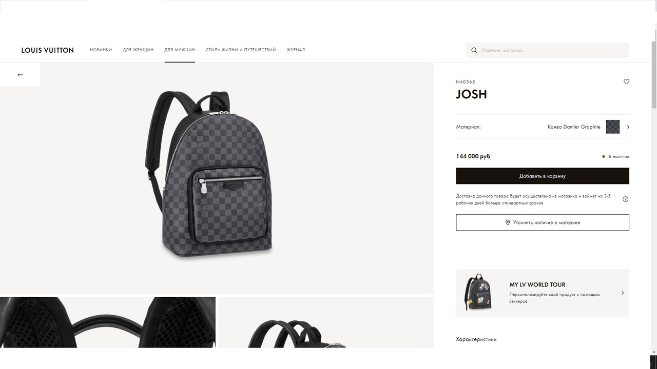 Рюкзак LOUIS VUITTON Josh Damier Graphite