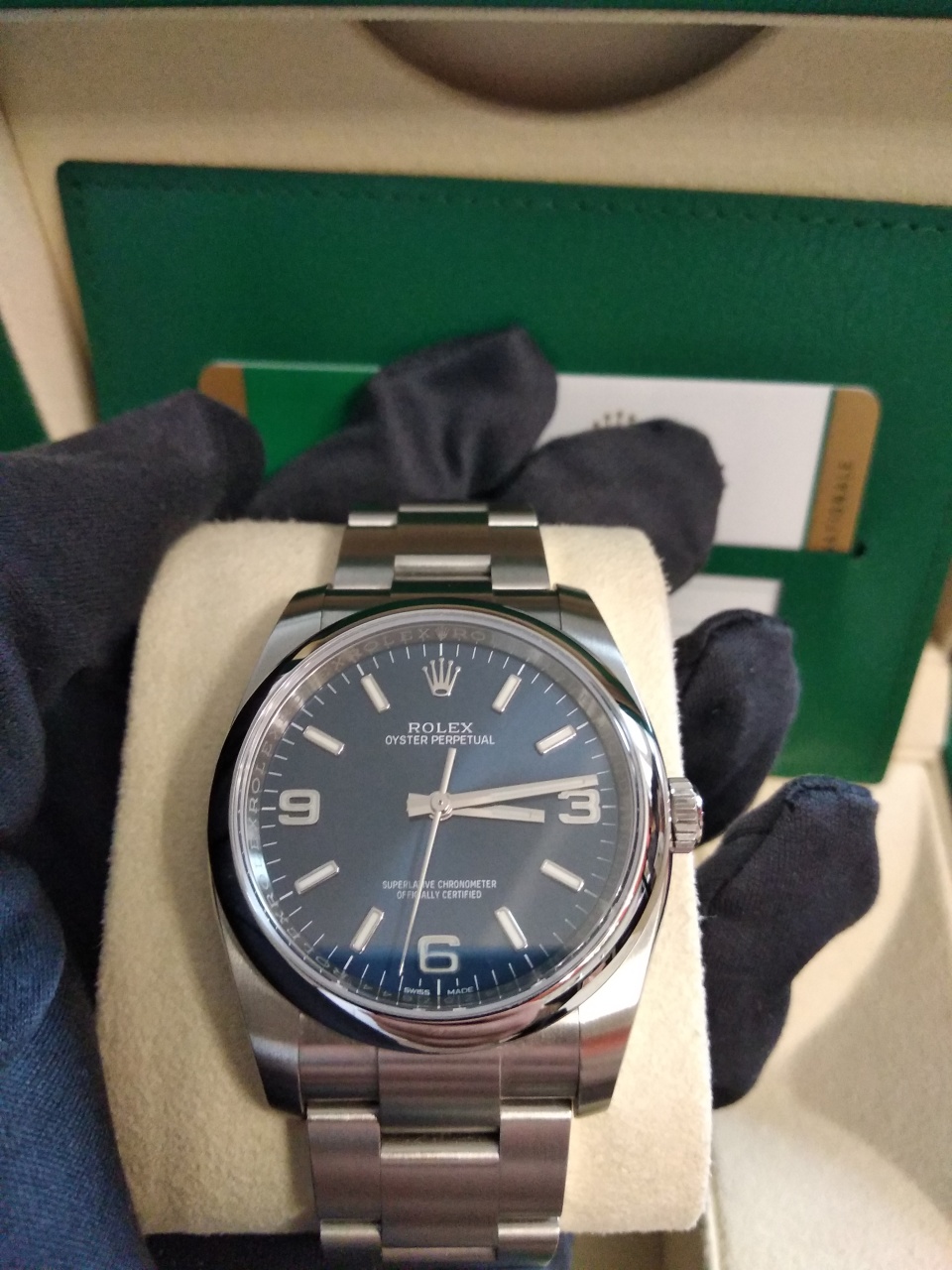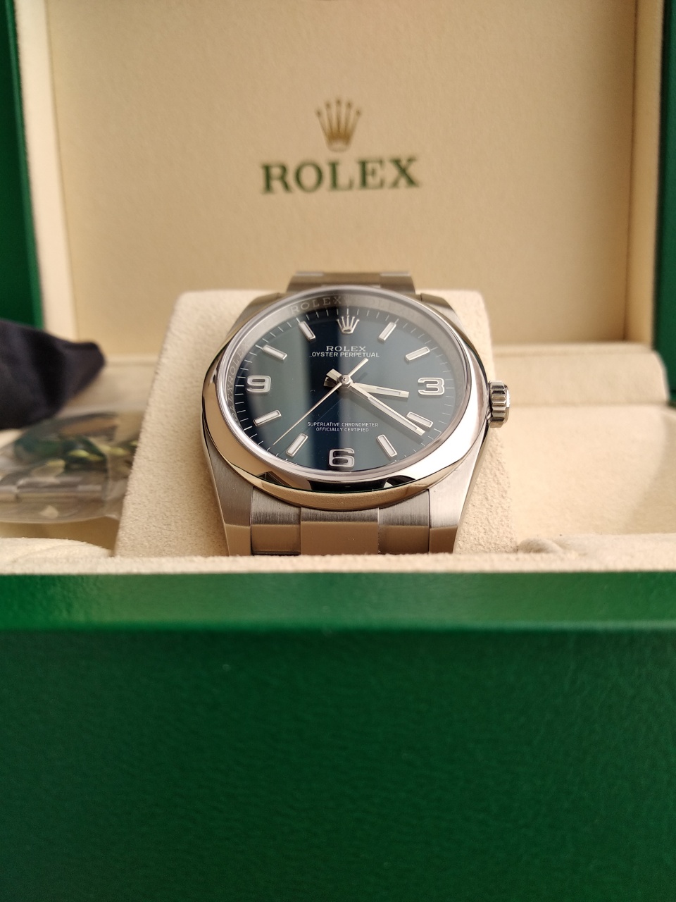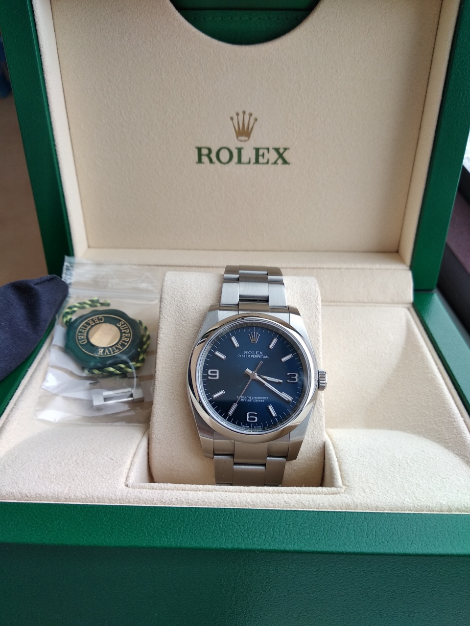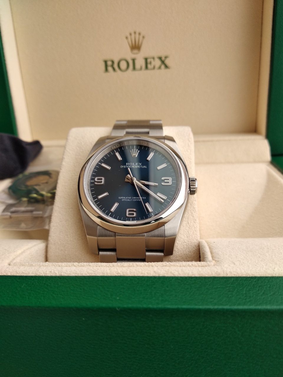 В продаже Rolex Oyster Perpetual 36mm с самым красивым синим циферблатом и цифрами 3-6-9.