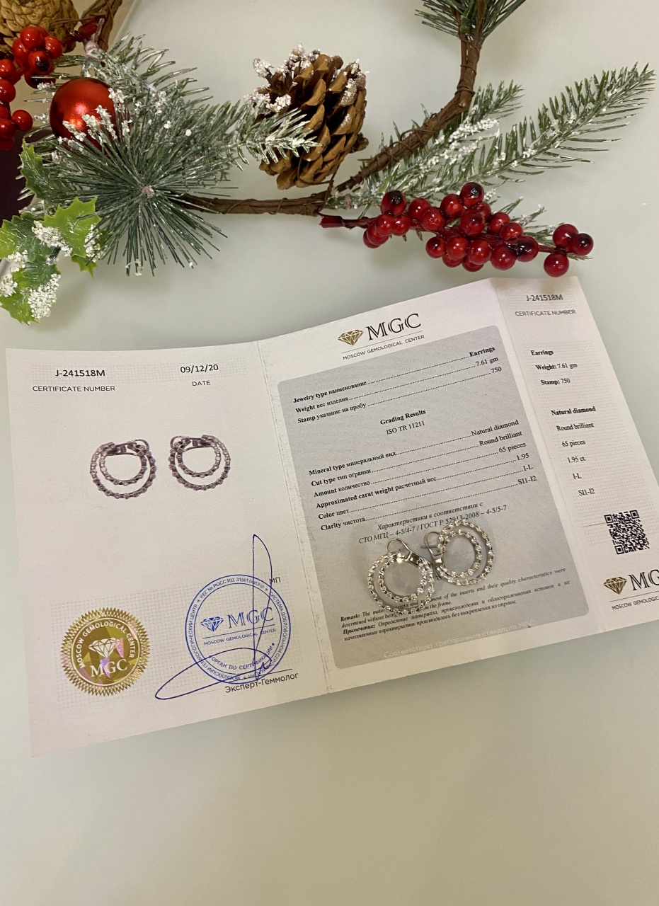 КРАСИВЫЕ СЕРЬГИ С БРИЛЛИАНТАМИ 1,95 CT , СЕРТИФИКАТ, ТОРГ/ОТПРАВКА