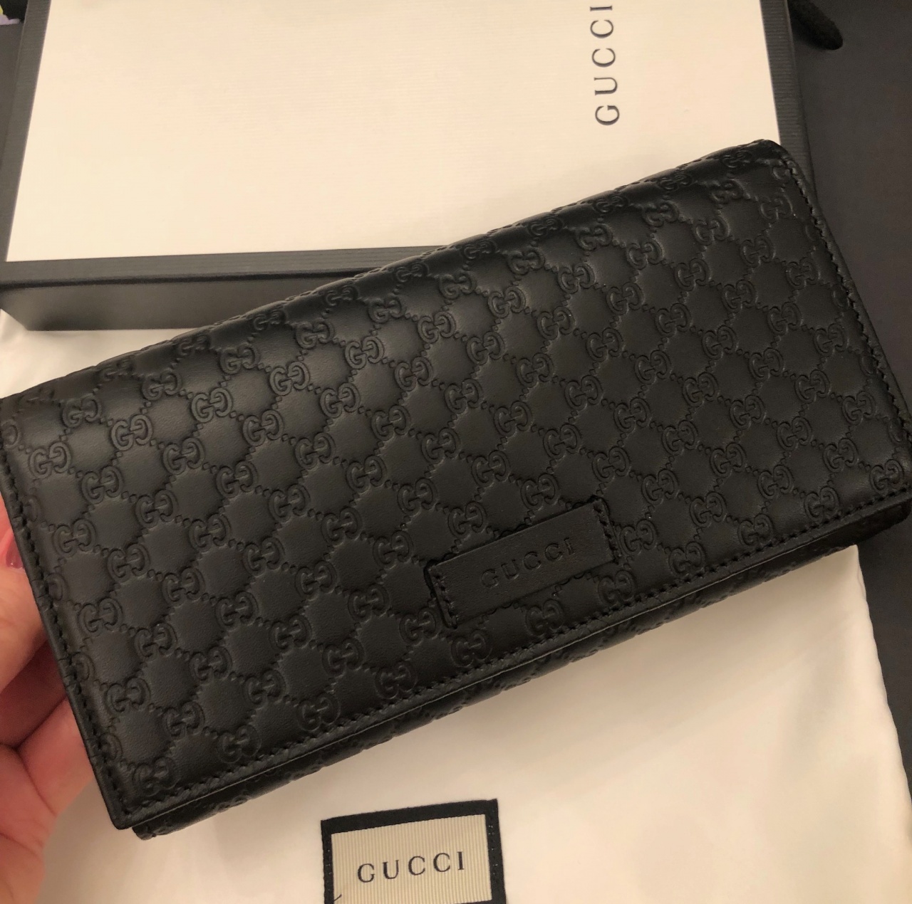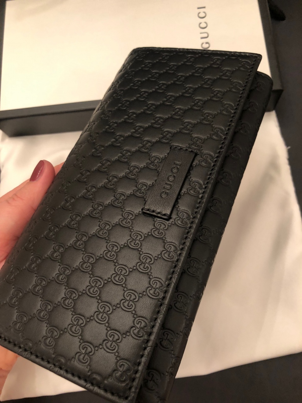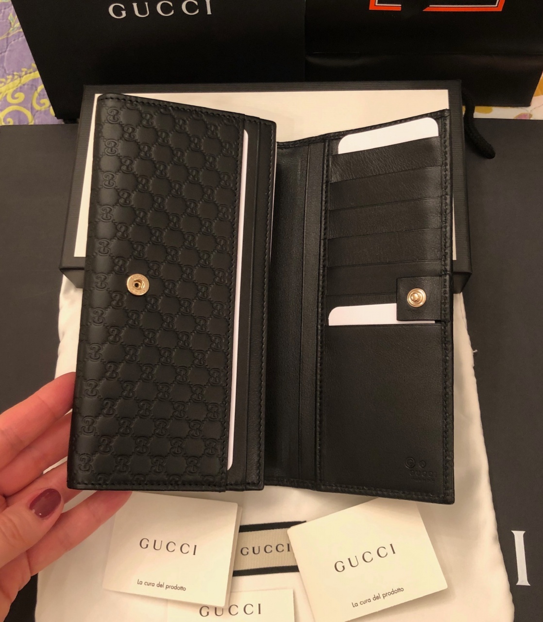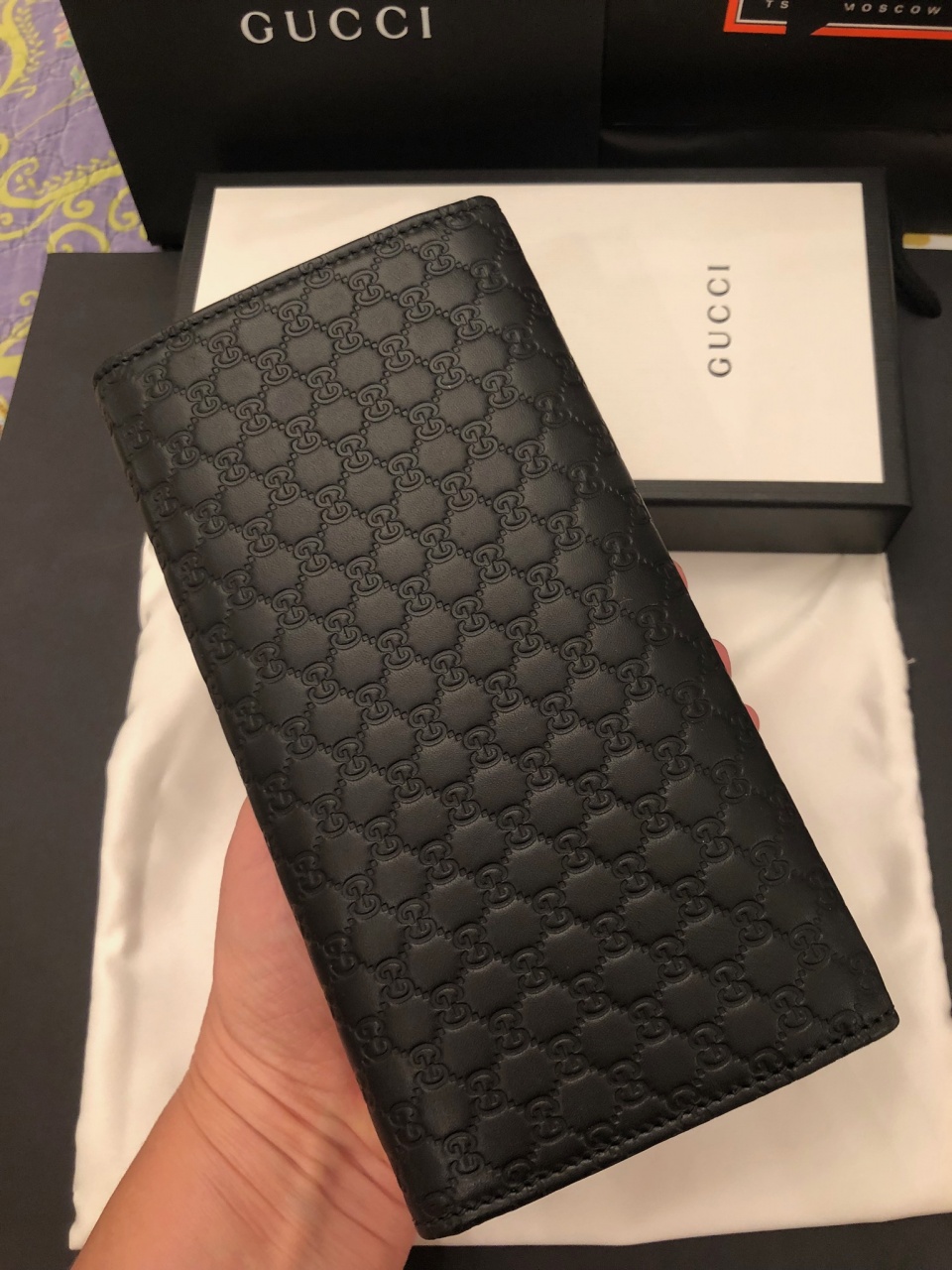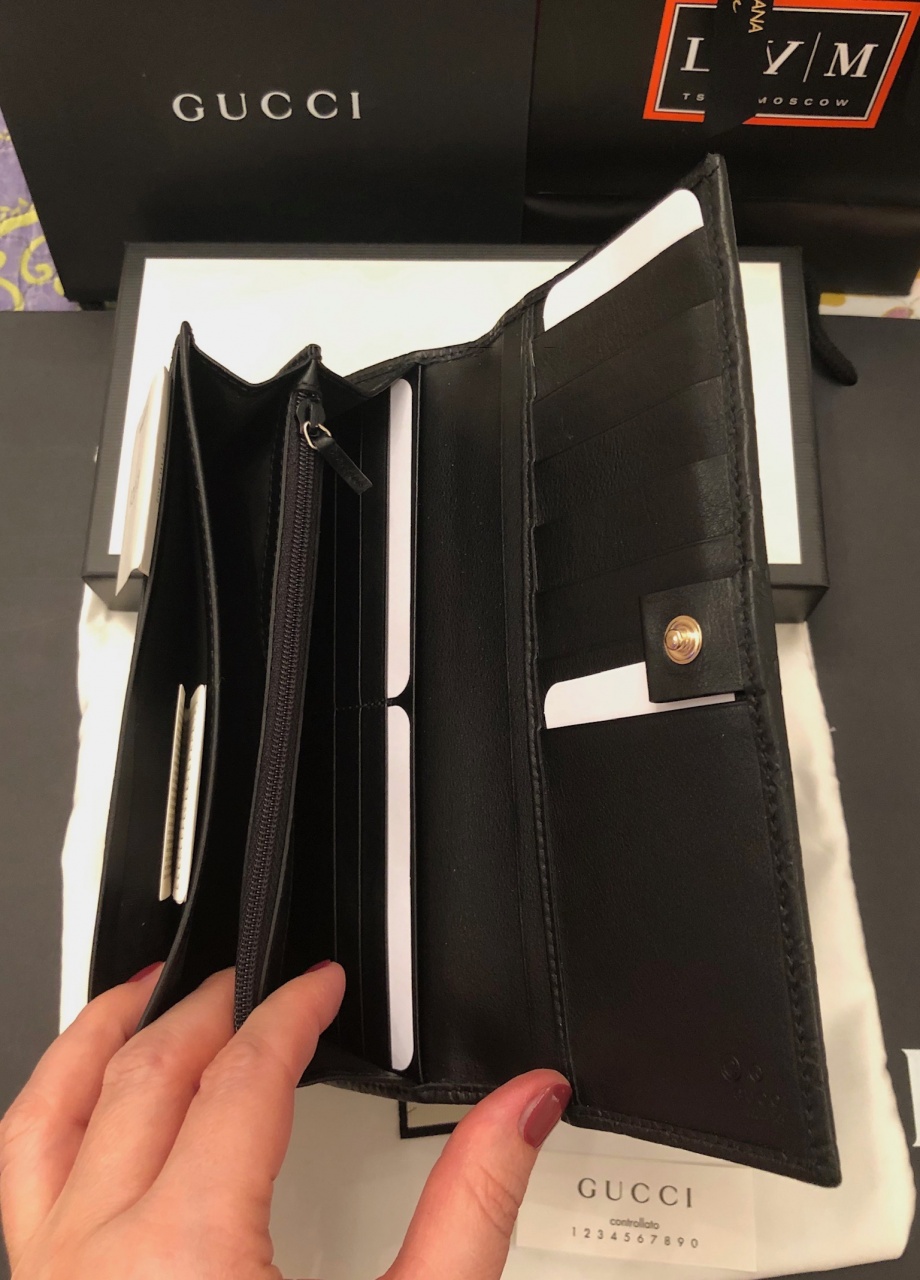 GUCCI. Женский кошелек. Большой, на кнопке. НОВЫЙ. Кожа с тиснением Signature GG. Цвет: черный