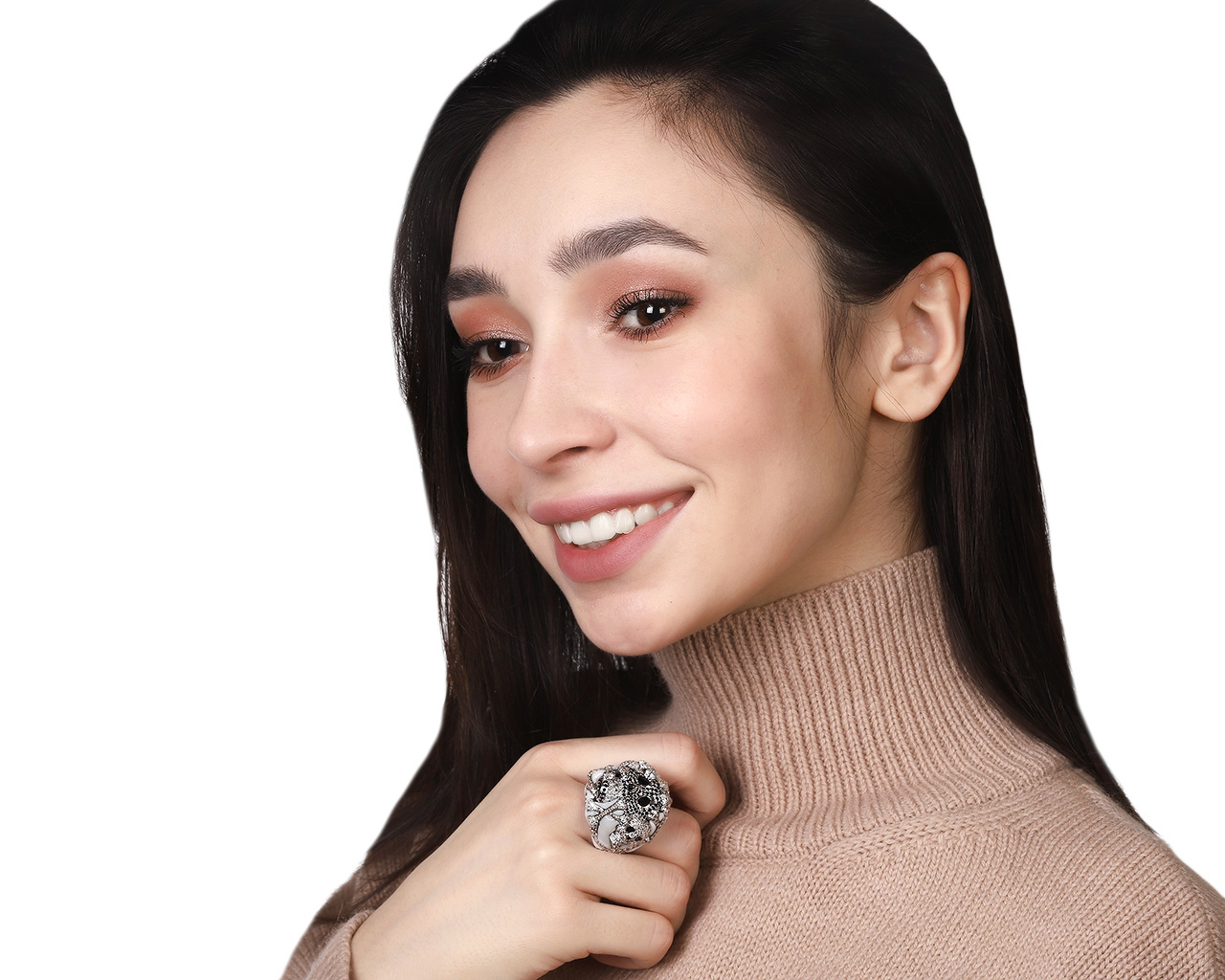 Представляем вашему вниманию волшебное золотое кольцо с ониксом, бриллиантами 4.92ct и белыми сапфирами 0.70ct.