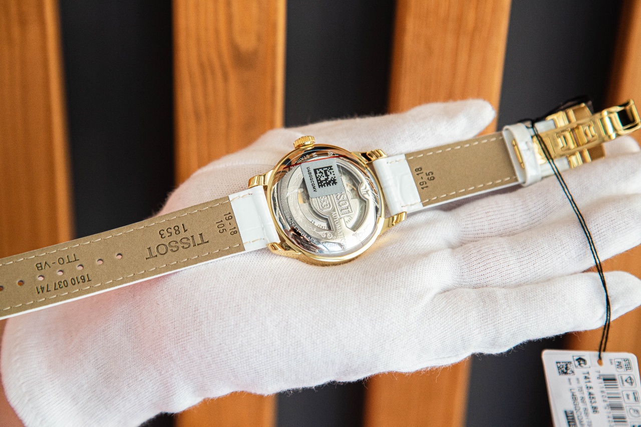 [Женские] TISSOT LeLocle Auto PVD T41545386. Белая кожа / Перламутровый цифер / 8 бриллиантов /d=39mm