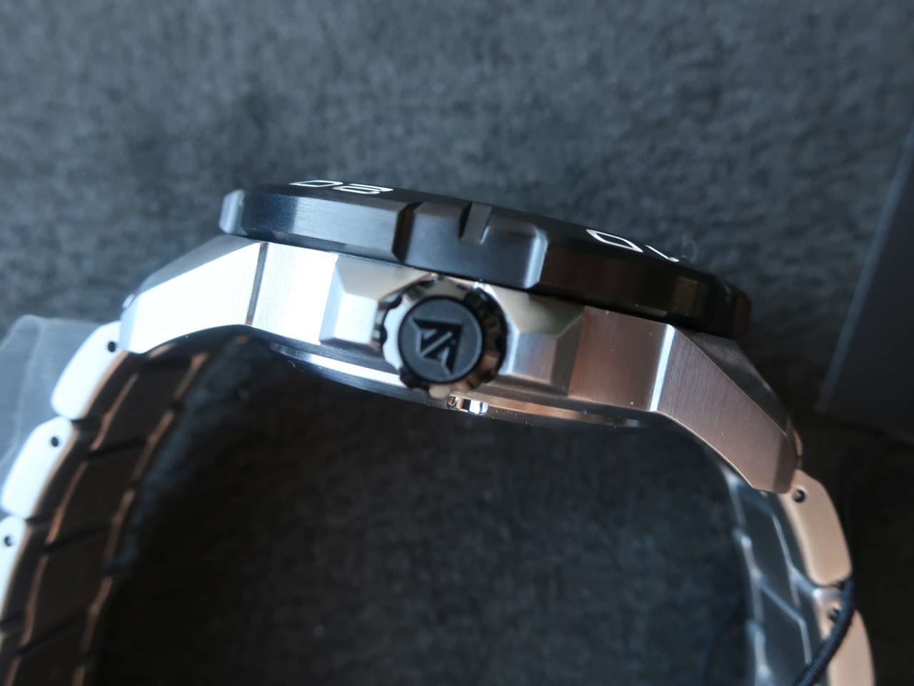 Кварцевые часы на механизме Eco-Drive B877 (заряжаются от любого источника света) с индикатором низкого заряда заряда аккумулятора и защитой от перезаряда. Отображение второго часового пояса. Запас хода 180 дней. Функция быстрого старта после полной разрядки аккумулятора. Стальной сатинированный корпус с выступами для защиты заводной головки. Однонаправленный безель с ионным покрытием на 60 щелчков. Антибликовое сапфировое стекло. Черный циферблат с накладными метками. Люминесцентные стрелки, метки и точка на безеле. Завинчивающаяся задняя крышка и заводная головка. Водозащита: 200м / 20Bar (подводное плавание с аквалангом). Стальной литой браслет. Расстояние между ушками 22 мм. Раскладывающаяся застежка с кнопками раскрытия, предохранительной скобой и функцией быстрой регулировки размера браслета. Корпус диаметром 44 мм и толщиной 13 мм.
