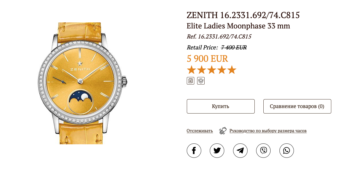 ZENITH 16.2331.692/74.C815 Elite Ladies Moonphase 33 mm.