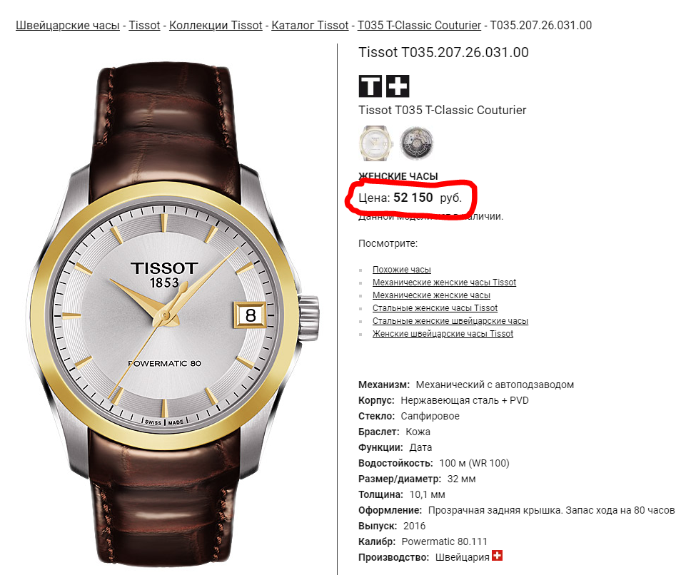 Калибр: Powermatic 80 (Запас хода 80 часов)