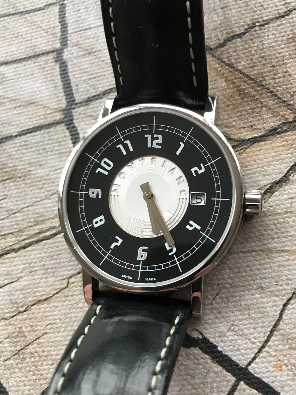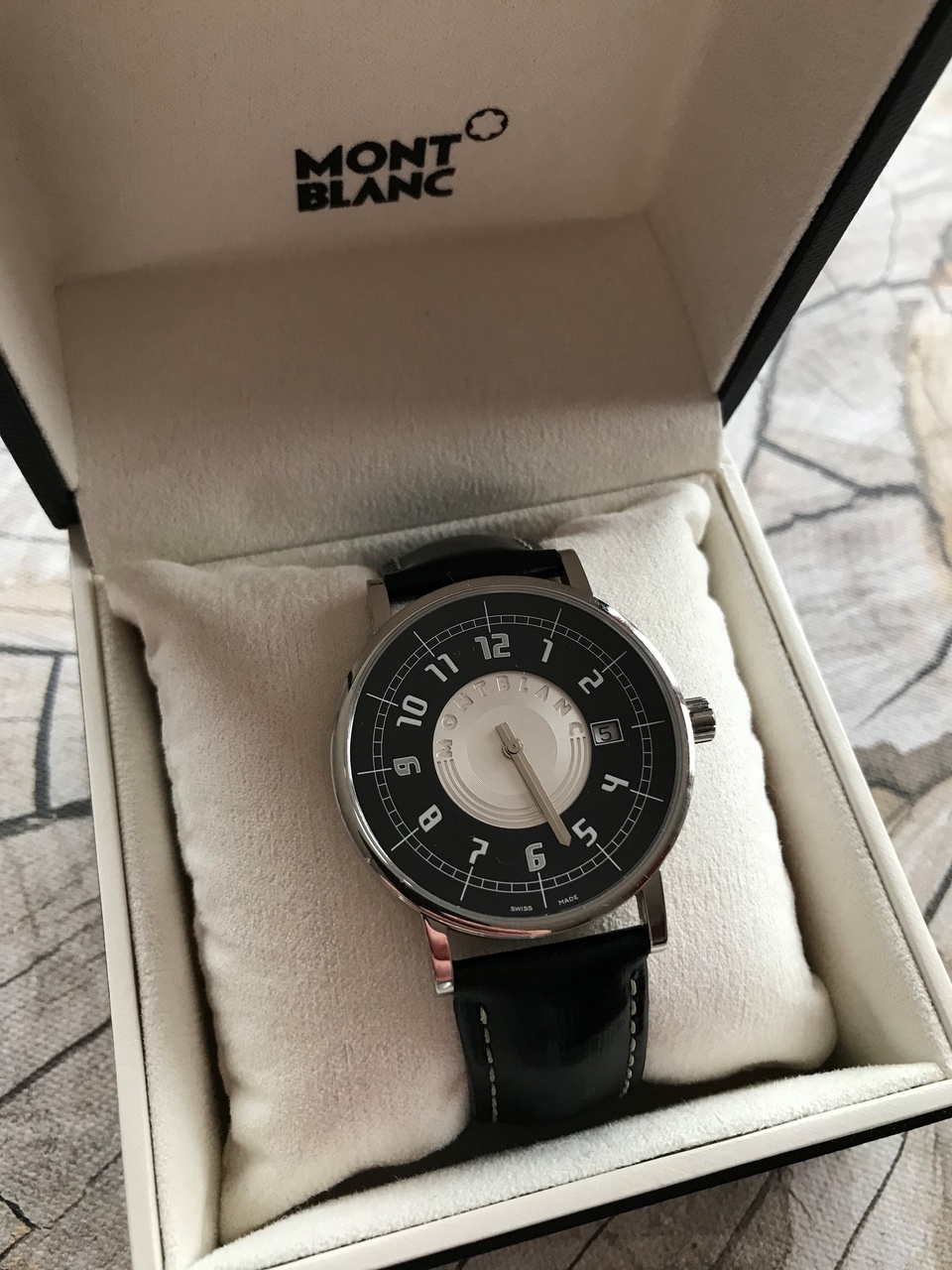 В продаже замечательный мужской двухстрелочник Montblanc Summit 7045 в отличном состоянии. В комплекте: часы, шкатулка.