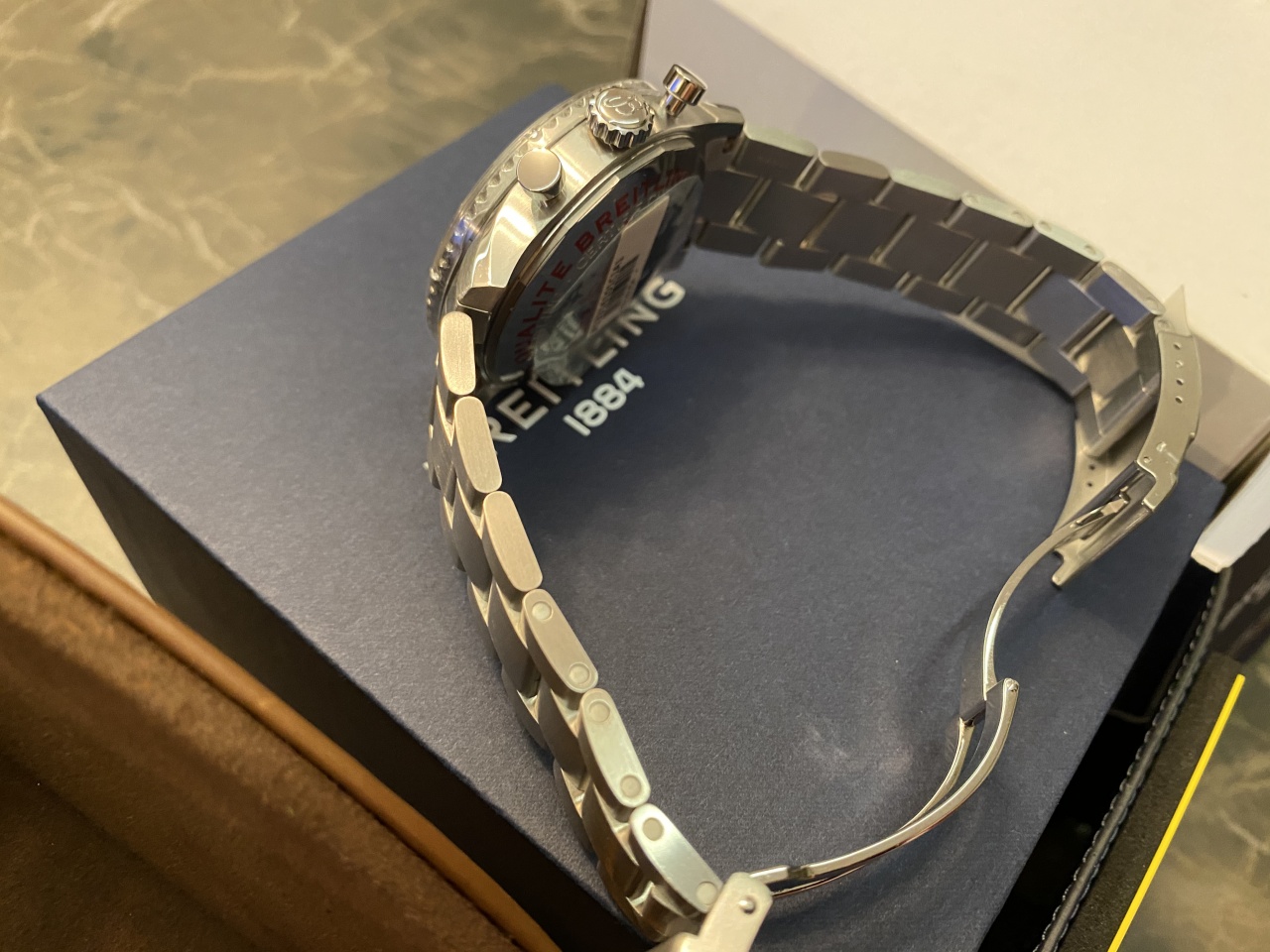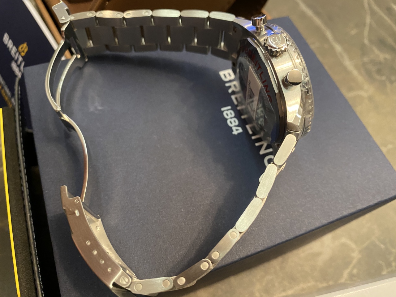 Новая модель хронографа от Breitling на стальном браслете, с нереально красивым, ярким циферблатом насыщенного синего цвета и заявленным производителем запасом хода около 48 часов (в реальности запас порядка 52 часов)!
