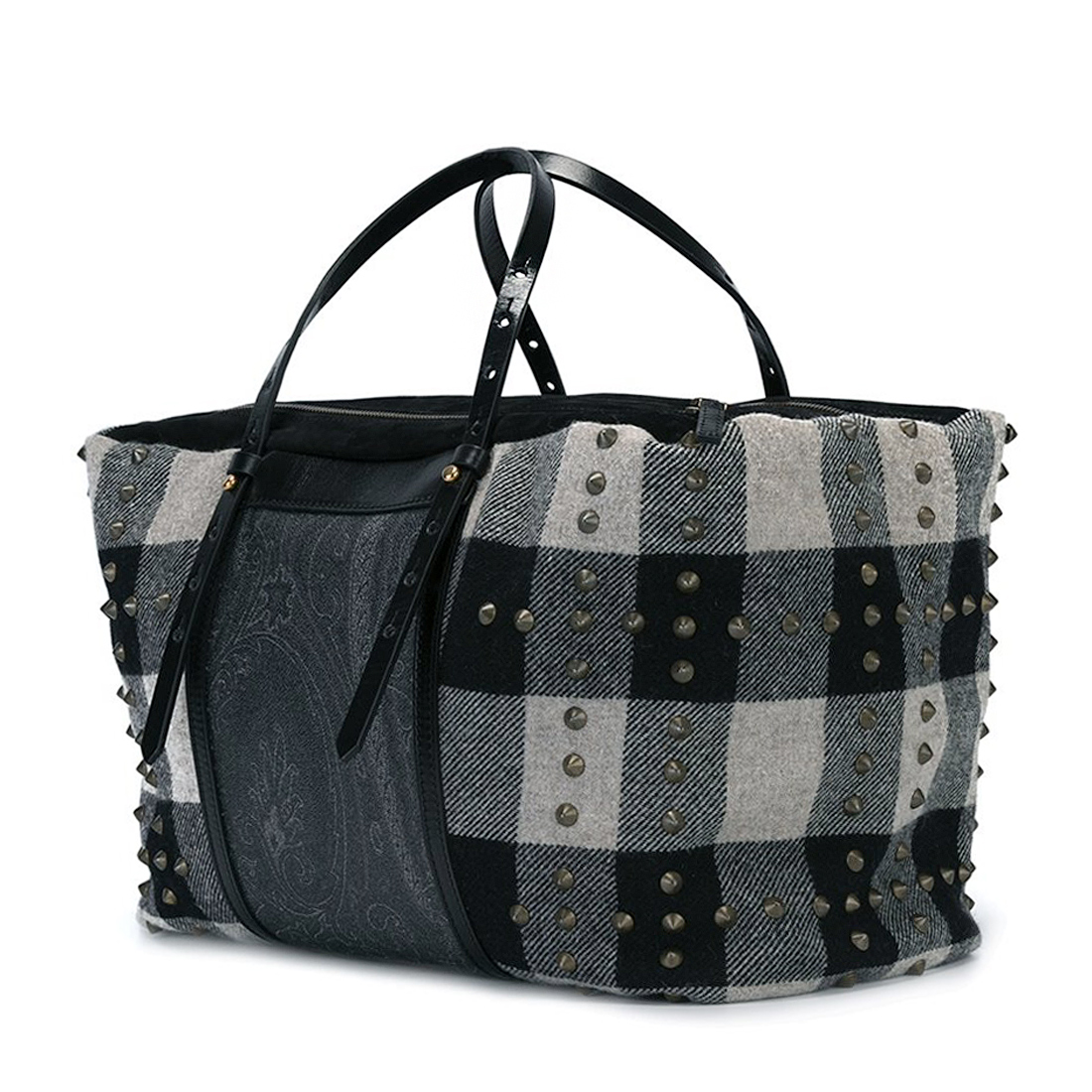 - Центральная часть сумки - фирменная канва с знаменитым узором Etro "paisley" в серых тонах.
