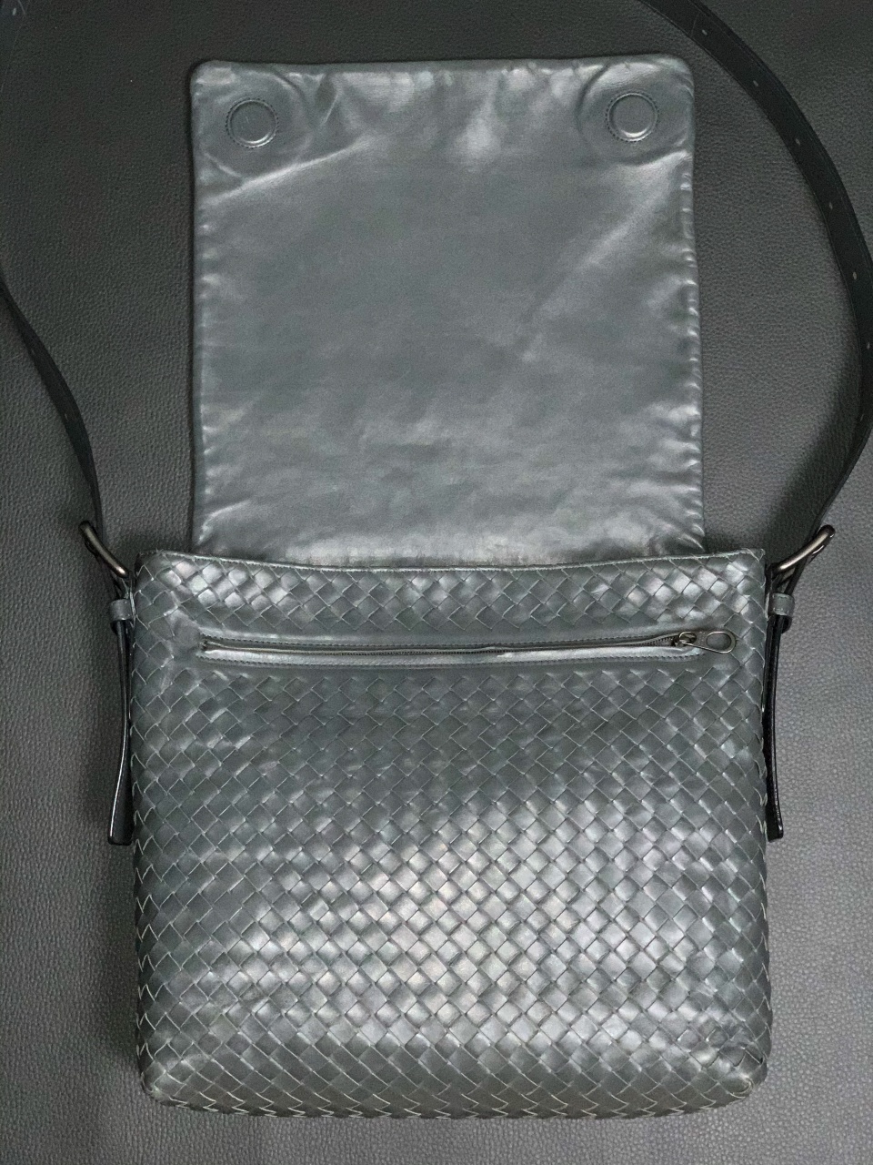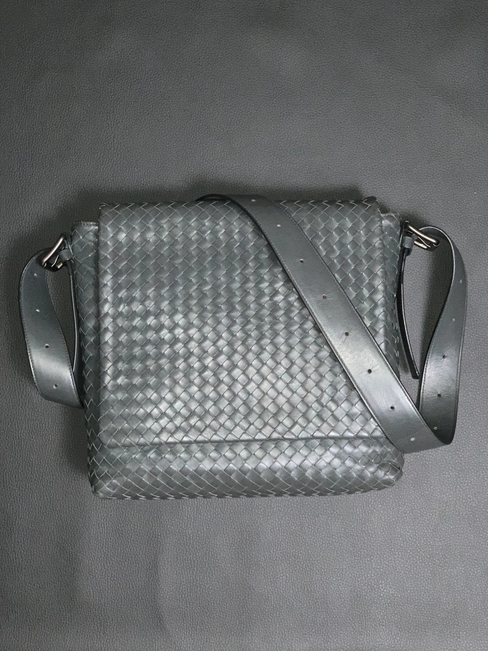 BOTTEGA VENETA Gray Messenger Bag. Мужская сумка-мессенджер. Б/у