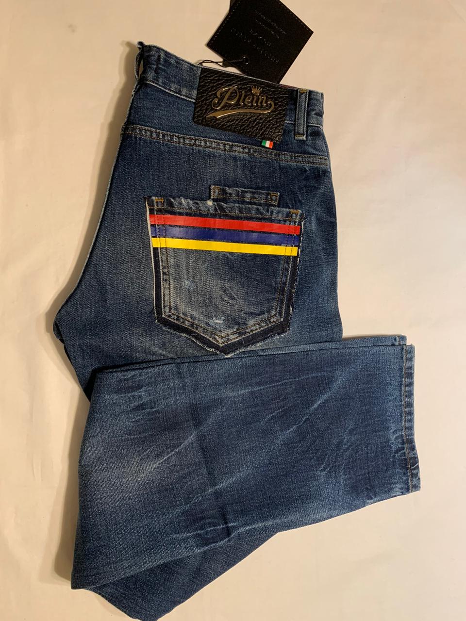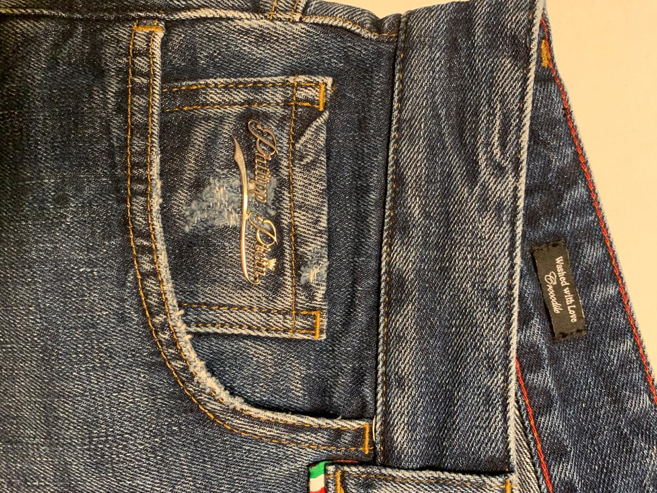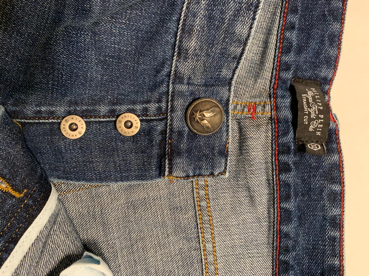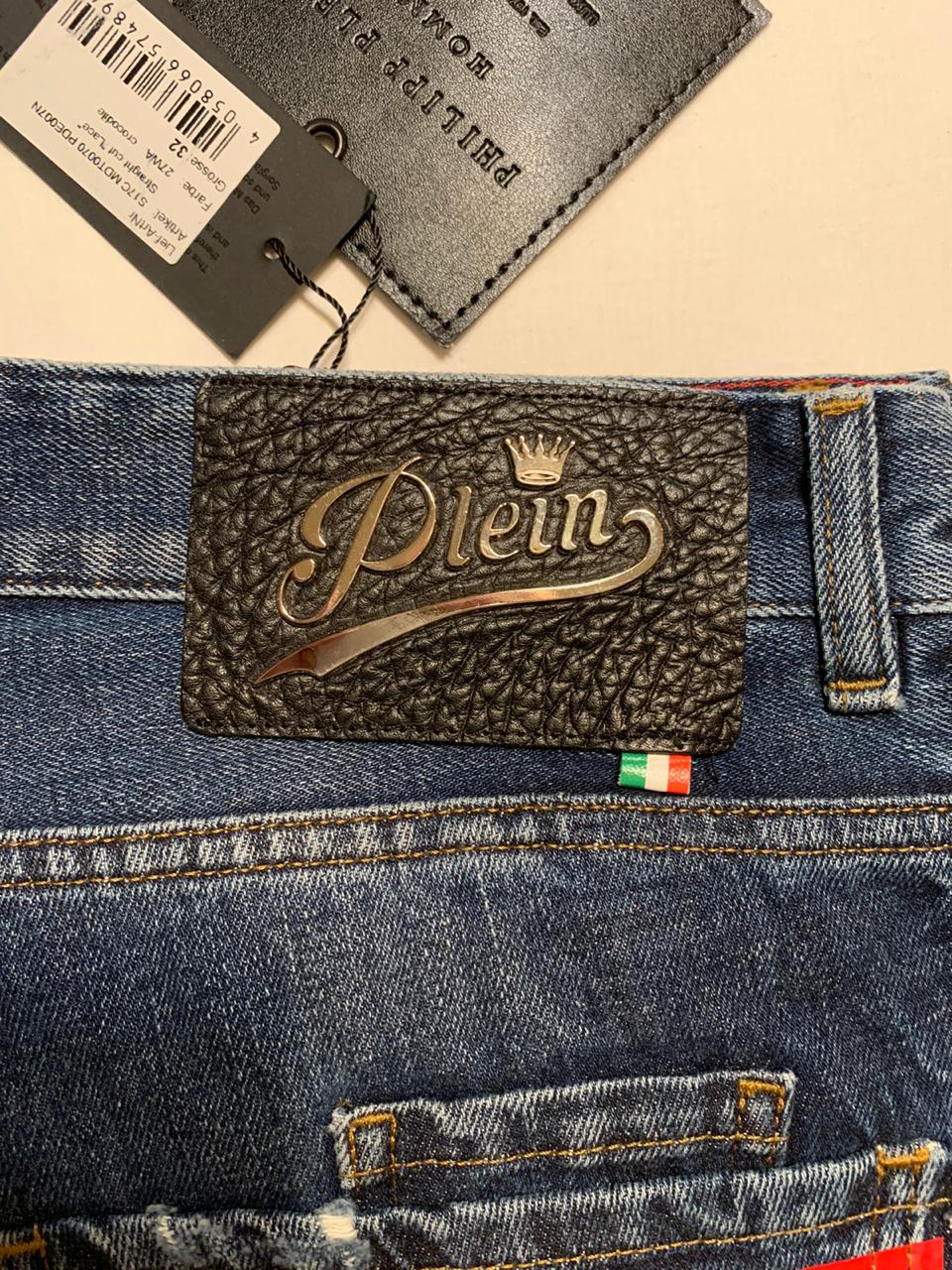 Продаются новые мужские джинсы итальянского бренда PHILIPP PLЕIN превосходного исполнения, прямые джинсы с классической посадкой из денима синего цвета, с потертостями и заплатами, пуговицы с логотипом бренда, множество карманов, заклепки с логотипом бренда, кожаные аппликации, состав: 98% хлопок, 2 % эластан, все бирки прилагаются, гарантированный 100% оригинал, размер 32, производство Италия.