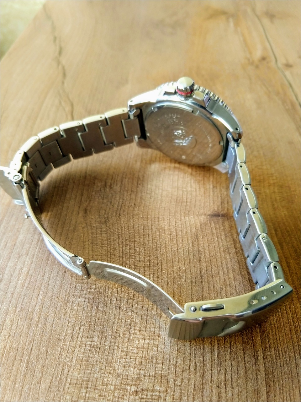 Часы в хорошем состоянии, без каких либо проблем, только офисные потёртости. Браслет, на руку до 19см(+раскладывается дополнительно на 2см) коробки и бумажек нет.