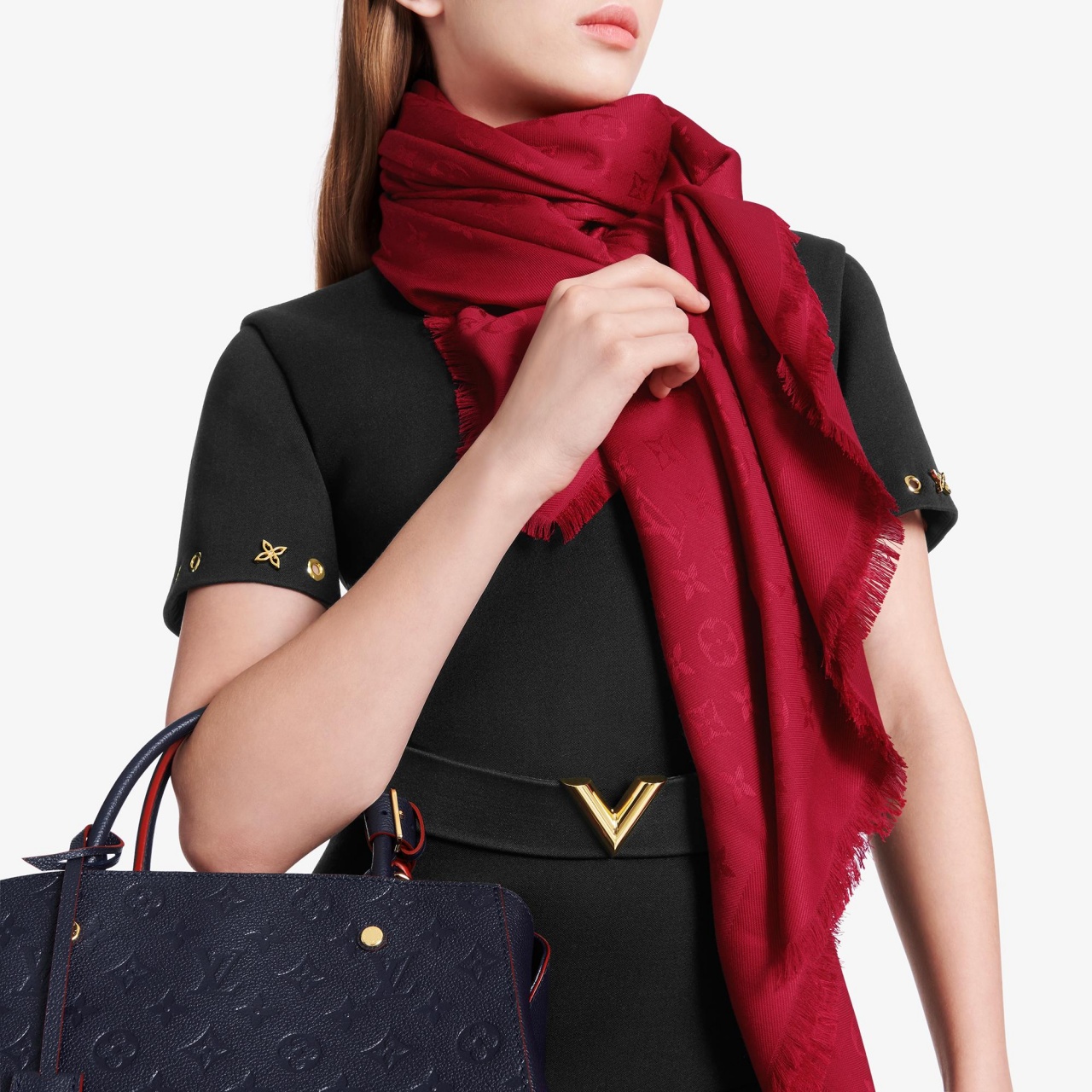 "Роскошная шаль Monogram, воплощение изящества и женственности, укутает теплом и комфортом, и станет незаменимым аксессуаром на каждый день. Невероятно мягкая и теплая, шаль украшена рисунком Monogram тон-в-тон."