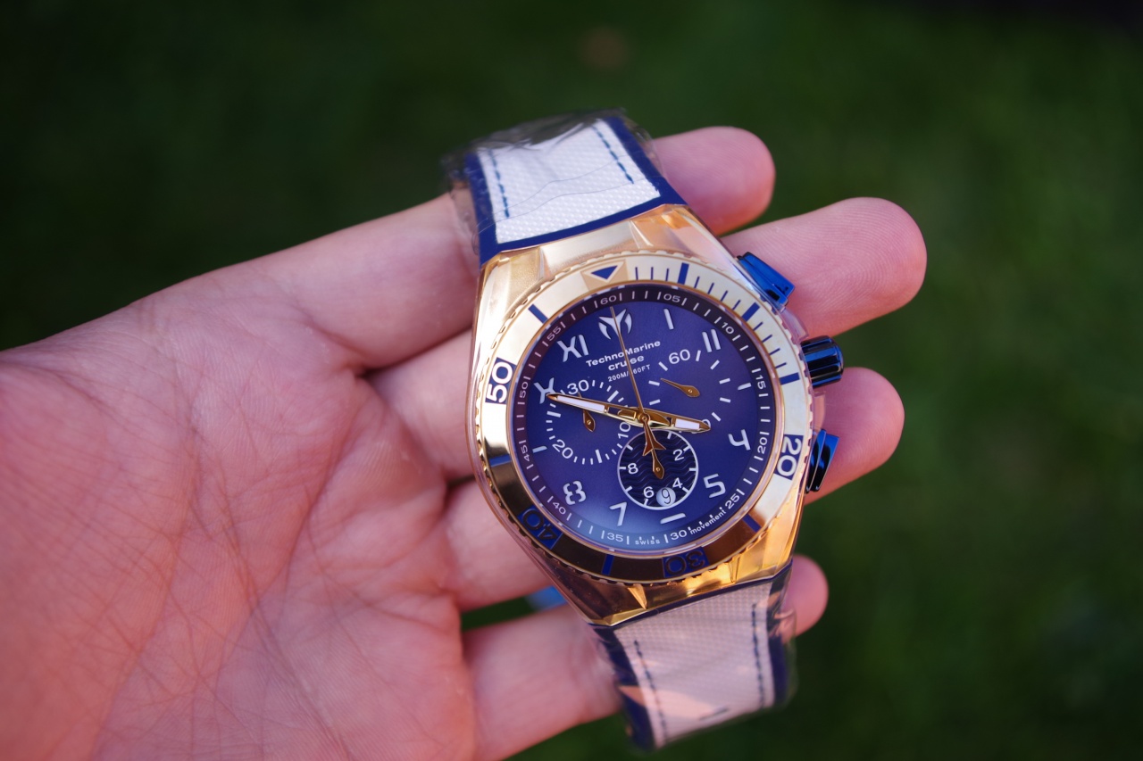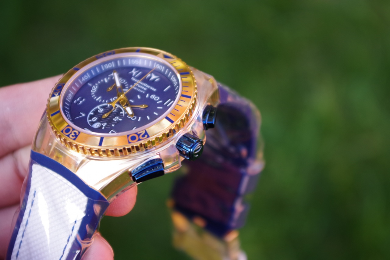 Cruise California. Унисекс. Часы-хронограф с секундомером. Завинчивающаяся заводная головка с защитой. В комплекте сменные синее покрытие корпуса и синий силиконовый ремешок.