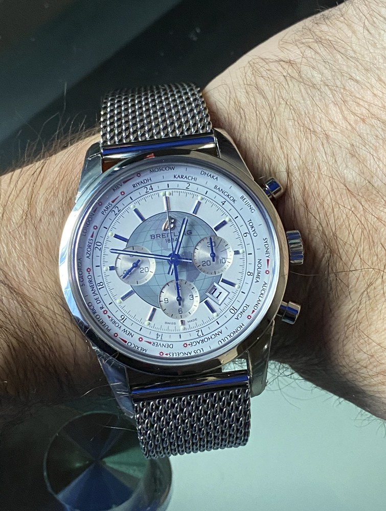 Всегда был убежден, что у каждого, зараженного ЧБ, в коллекции должен быть хоть один Брайт, как минимум. И тоже планировал, со временем, дополнить коллекцию зеленым "Премьером" от бентли. Но неожиданно на маркете всплыла очень интересная, почти винтажная модель Брайта - Transocean Chronograph Unitime. А так как я не ровно всегда дышал к world таймерам, еще со времен моих любимых JLC master geographic, то глаз за объявление зацепился моментально.