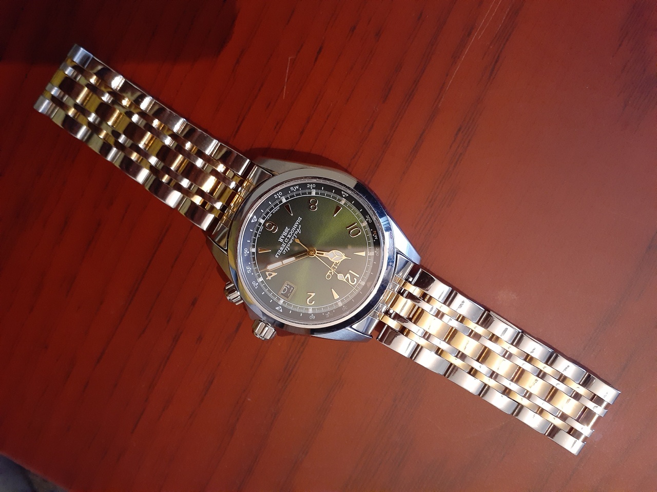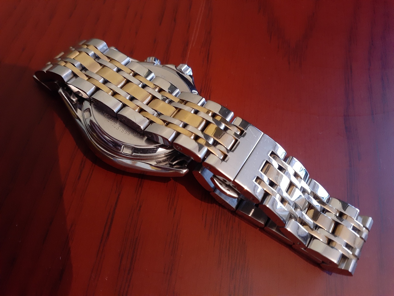 20 мм биколорный (серебр./жёлт.) с двумя комплектами концевиков (литыми прямыми и округлыми нелитыми) металлический браслет solid для мужских наручных часов. Нелитые округлые концевики можно гнуть, что увеличивает вероятность, что они подойдут к каким-то часам. ...Прямые литые концевики установятся практически на все возможные часы - без дополнительных манипуляций. Цена браслета 4500 руб.
