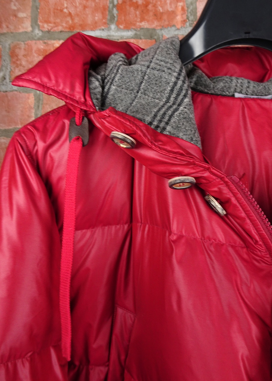 Интересный, стильный цвет - пуховик не обычный красный, а более редкого оттенка: насыщенно брусничный.