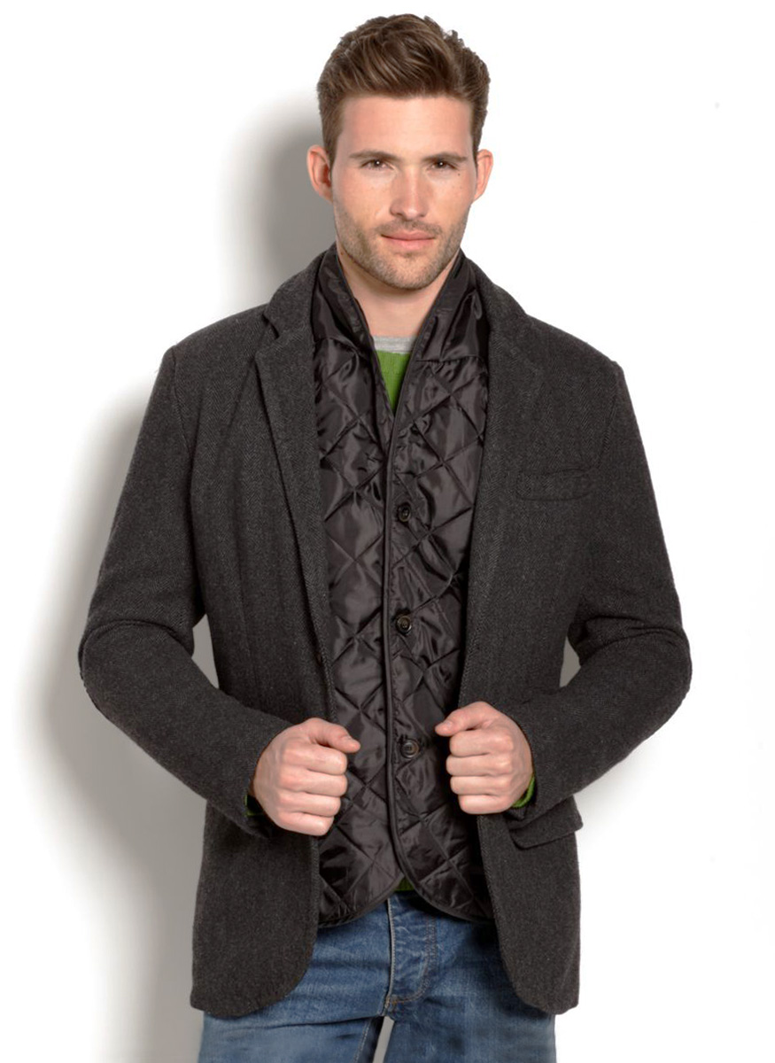 Стильная мужская куртка в формате блейзера, модный современный городской фасон - пиджак, дополненный утепленной подкладкой и закрывающей грудь съемной подстежкой.
