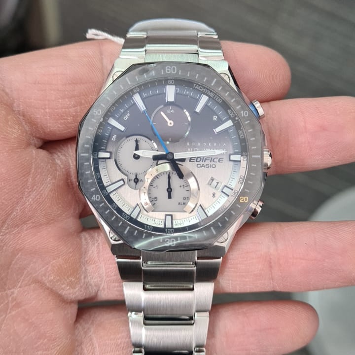 Перед вами коллаборация второй половины 2020 года в коллекции Еdifiсе и итальянской гоночной команды Формулы-1 Sсudеriа АlрhаТаuri из свежей серии ЕQВ-1100 в стальном корпусе с градиентным циферблатом в цветах болида команды и карбоновым безелем! Особенность модели — невероятно тонкий, по сравнению с другими часами эдифис, корпус толщиной всего в 8.9 мм. В часах используется новый модуль, оснащенный Вluеtооth, благодаря чему, часы могут автоматически подключаться к вашему смартфону для синхронизации точного времени, удобной настройки или для быстрого поиска телефона, если он как обычно куда-то пропал (смартфон начнет издавать звуковые сигналы, при нажатии на специальную кнопку на часах). Отличный лимитированный релиз, который понравится всем поклонникам гоночного спорта и просто любителям стильных часов. Для многих поклонников Ф-1 скудерия АlрhаТаuri не является чуждой, ведь именно в этой итальянской конюшне выступает российский пилот — Даниил Квят. Стоит отдельно отметить наличие в новинке солнечной батареи, водозащиты в 10 бар, отображение времени во втором часовом поясе на суб-циферблате около 9 часов, прочного сапфирового стекла и наличие памяти секундомера на 200 кругов! Отличный стальной релиз от Саsiо, задающий новый тренд, к тонким технологичным костюмникам, со спортивным характером.