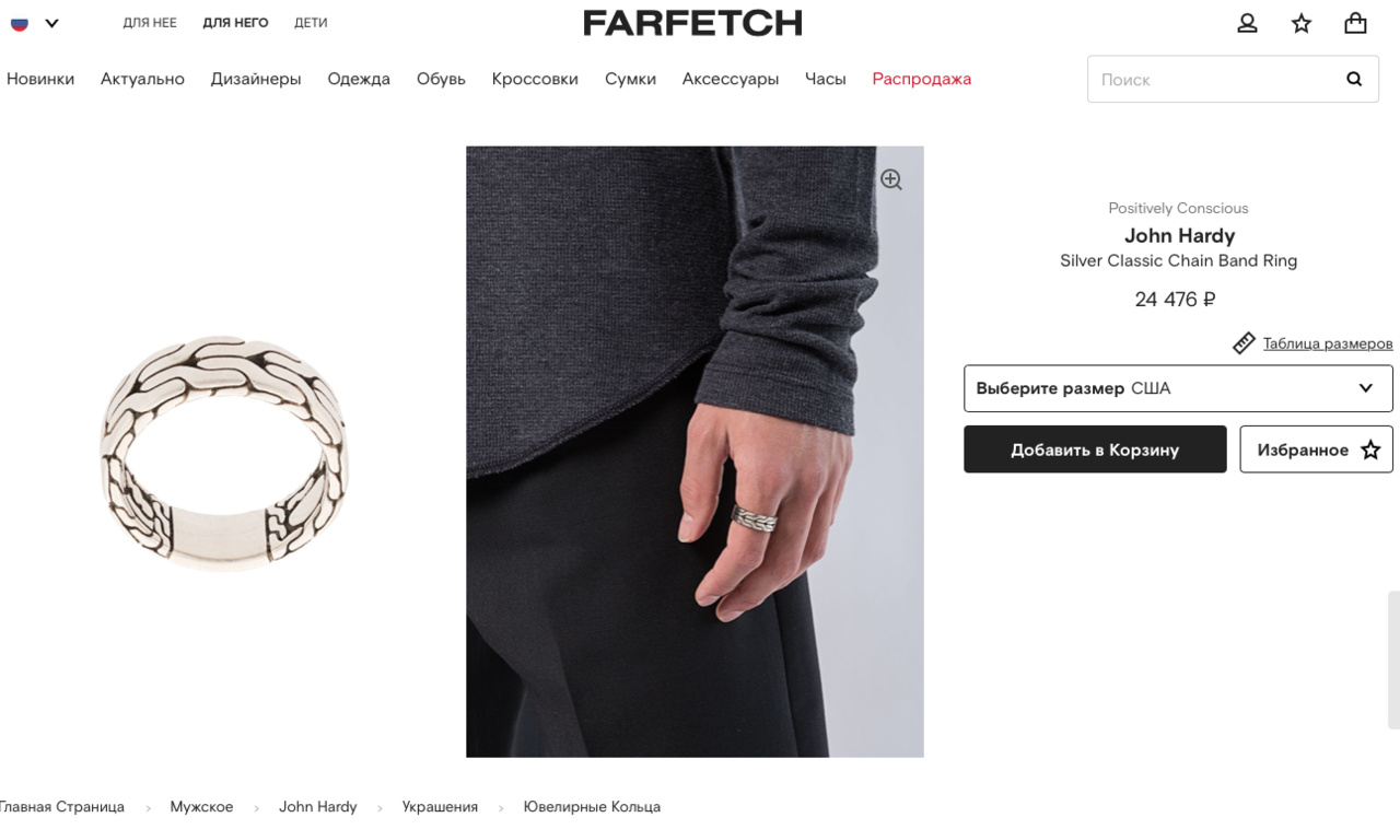 КОЛЬЦО JOHN HARDY "Silver Classic Chain Band Ring"