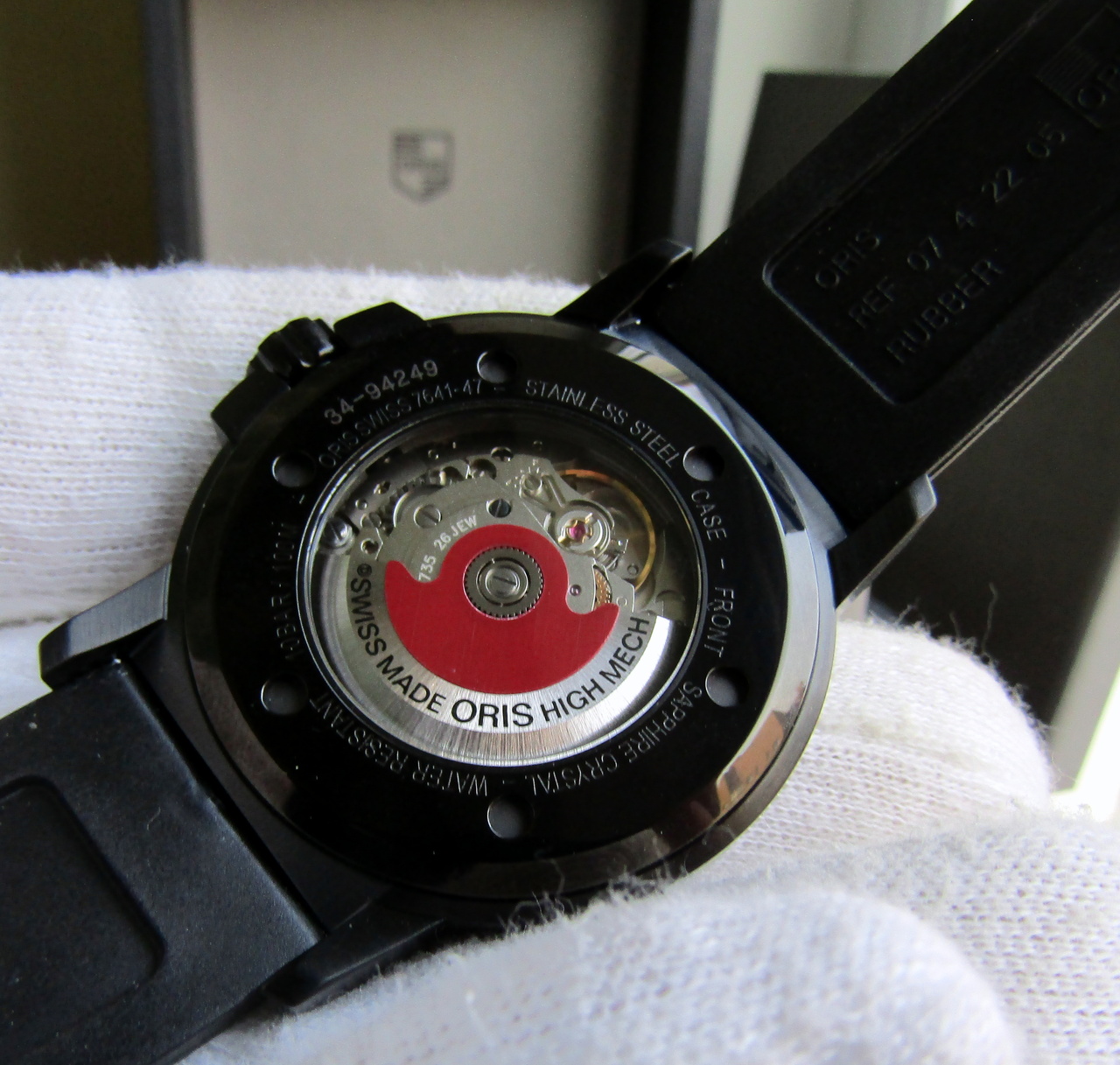 ЗАДНЯЯ КРЫШКА КОРПУСА: Нержавеющая сталь с чёрным DLC покрытием, завинчивающаяся прозрачная задняя крышка из минерального стекла