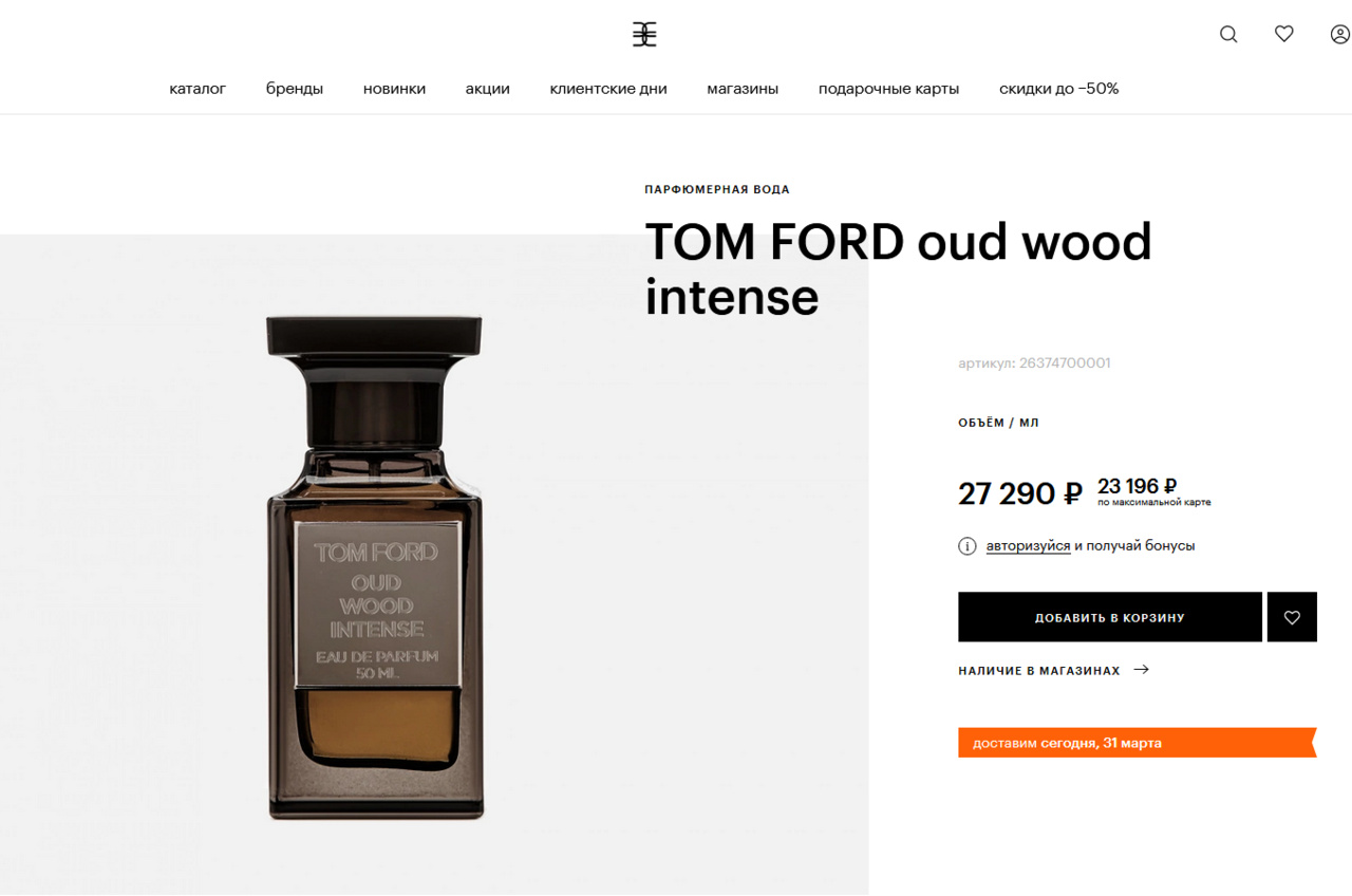 SALE - ПАРФЮМ НИША - TOM FORD OUD WOOD INTENSE