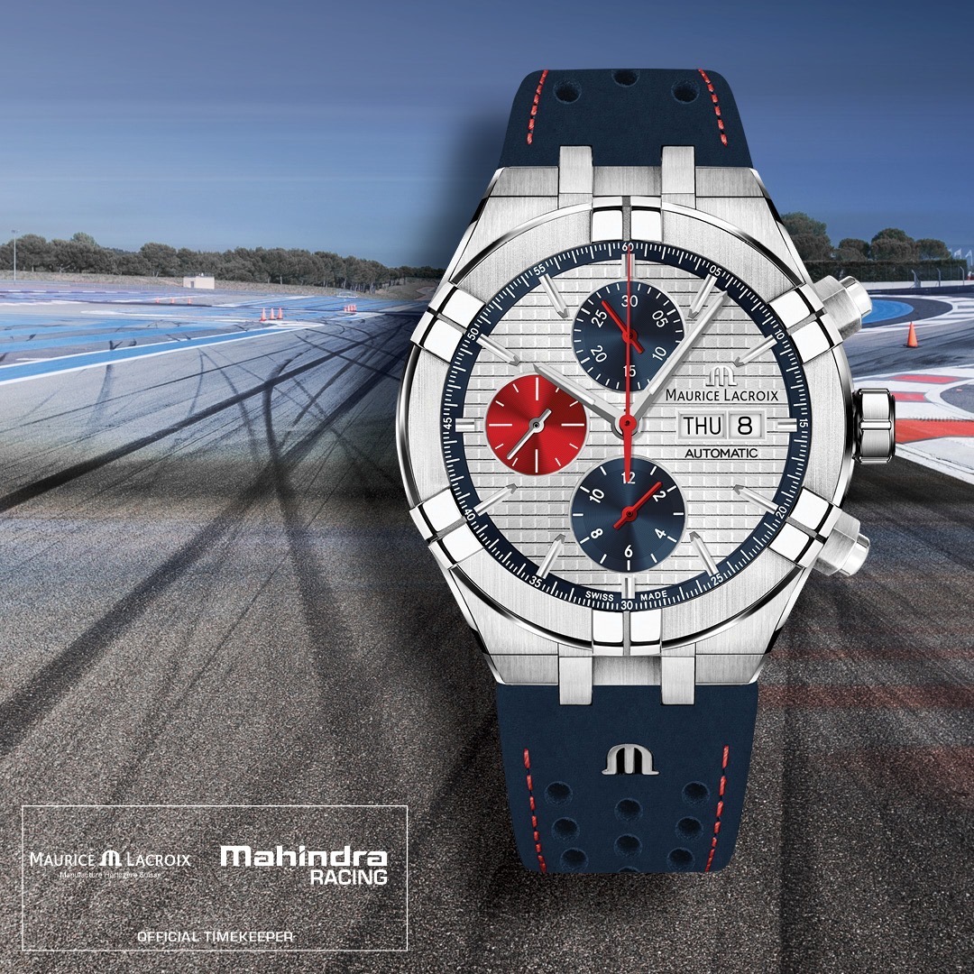 Компания Maurice Lacroix, официальный хронометрист гоночной команды MahindraRacing, с радостью представляет три новые версии своей модели AIKON, созданные в рамках этого партнерства. Каждый из этих хронографов выполнен в цветах формы гоночной команды, и воплощает в себе стиль современного города и техническое совершенство.