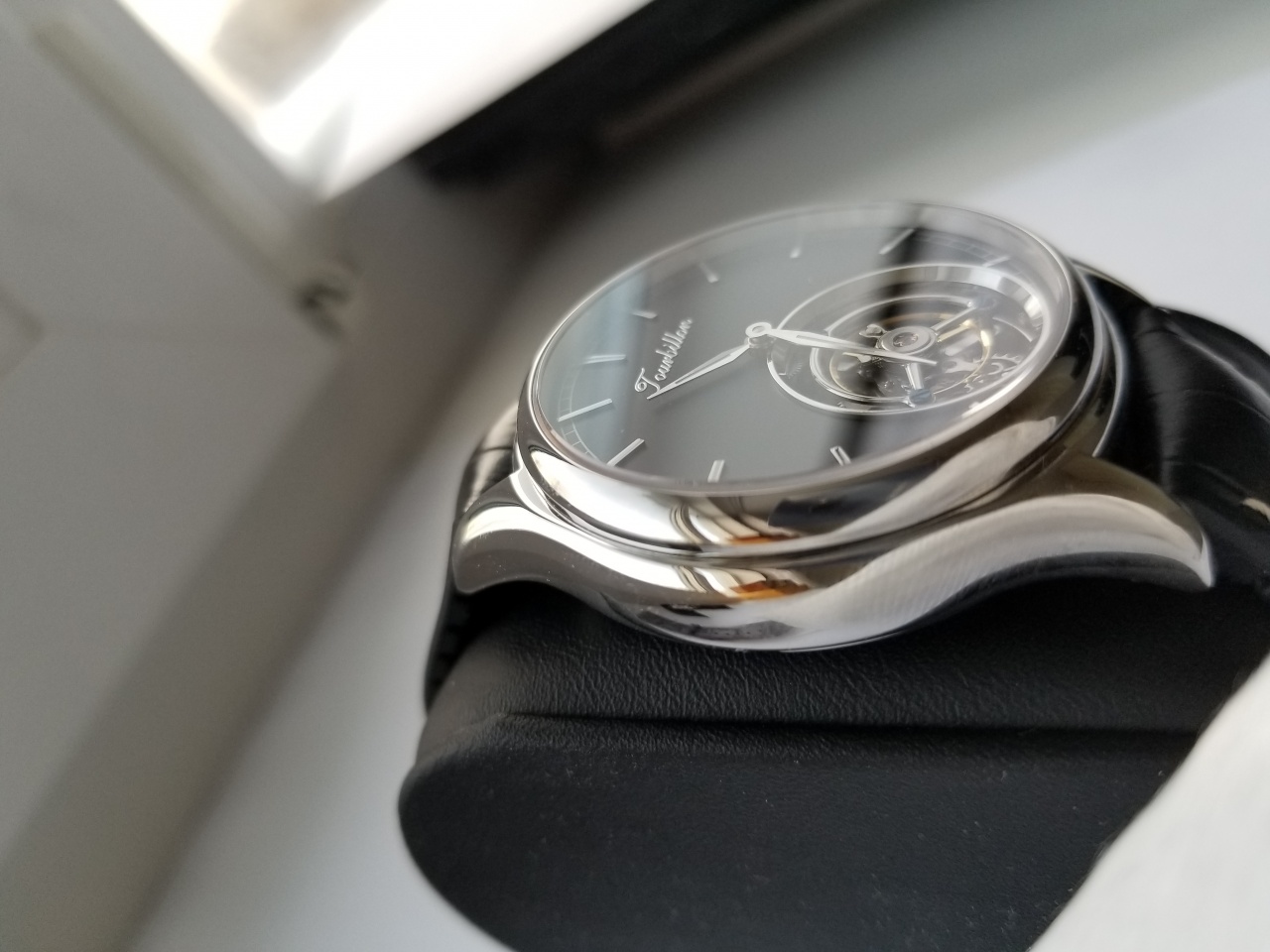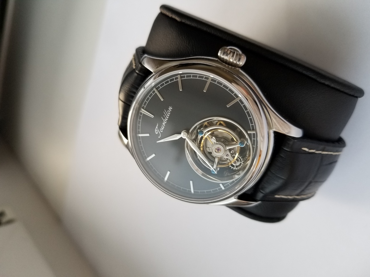 Циферблат: Темнографитовый с накладными метками и турбийоном по центру