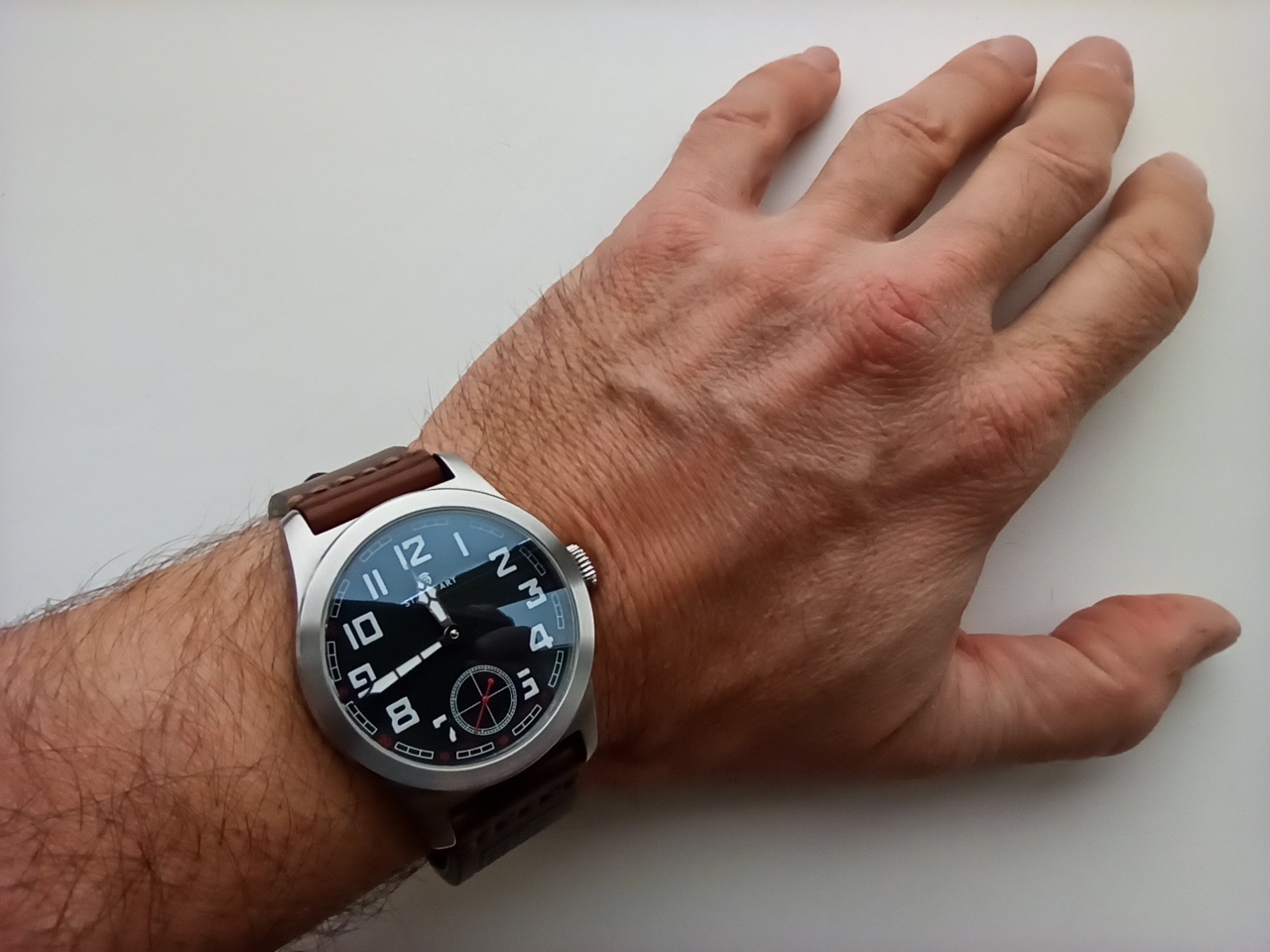 42 в названии означает диаметр корпуса 42 мм. Классические стрелки очень хорошо гармонируют с большими читаемым цифрами, которые только прерываются на 6 часах вспомогательным секундным циферблатом.
