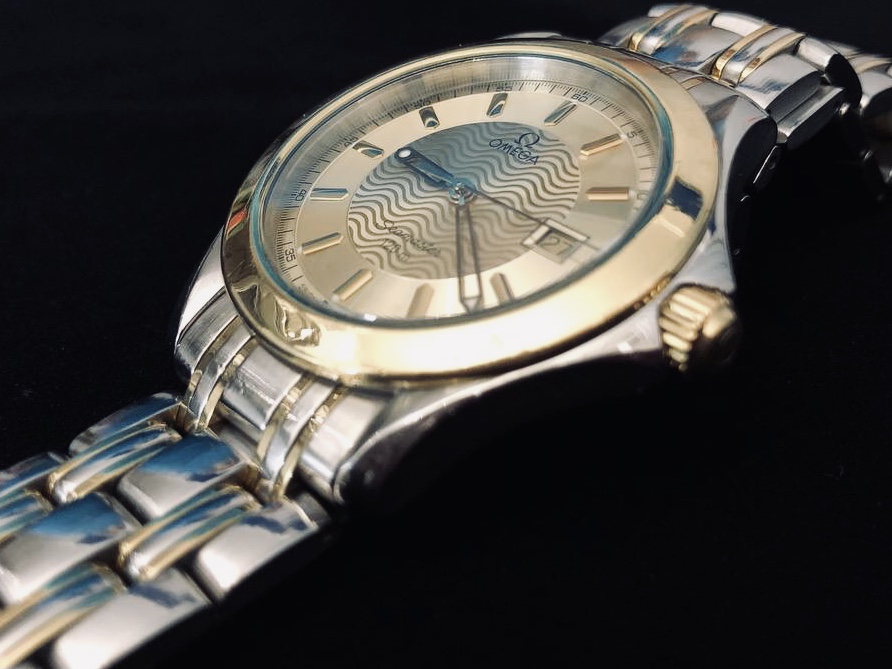 Omega seamaster 120м Quartz , корпус- сталь/золото 750 проба, браслет- сталь/золото 750 проба (не позолота!). Стекло сапфир. Диаметр корпуса 36 мм, да размер не в тренде, но посмотрите на фото, на моем запястье 19 см сидят великолепно. Тот самый случай, когда часы- под любое запястье.