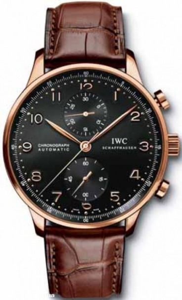 Изысканные, выполненные в классическом стиле часы-хронограф: на черном с арабскими цифрами циферблате расположено два дополнительных хронографических циферблата. Частота 28 800 полуколебаний в час. 31 камень. Корпус розового золота (18 карат), 40,9 мм. Циферблат черный. Запас хода около 44 часов. Водонепроницаемость 30 м. Стекло - сапфир. Браслет коричневый, кожаный. Функции: секунды, минуты, часы, хронограф. Куплены 06.05.2007 в Салоне IWC, Москва, Петровка, д.5 Отличное состояние. Коробка, документы.