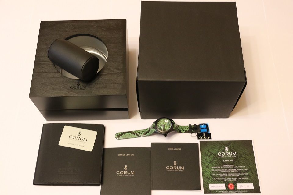 Corum Bubble Art 47 Green Python Leather Limited Edition.