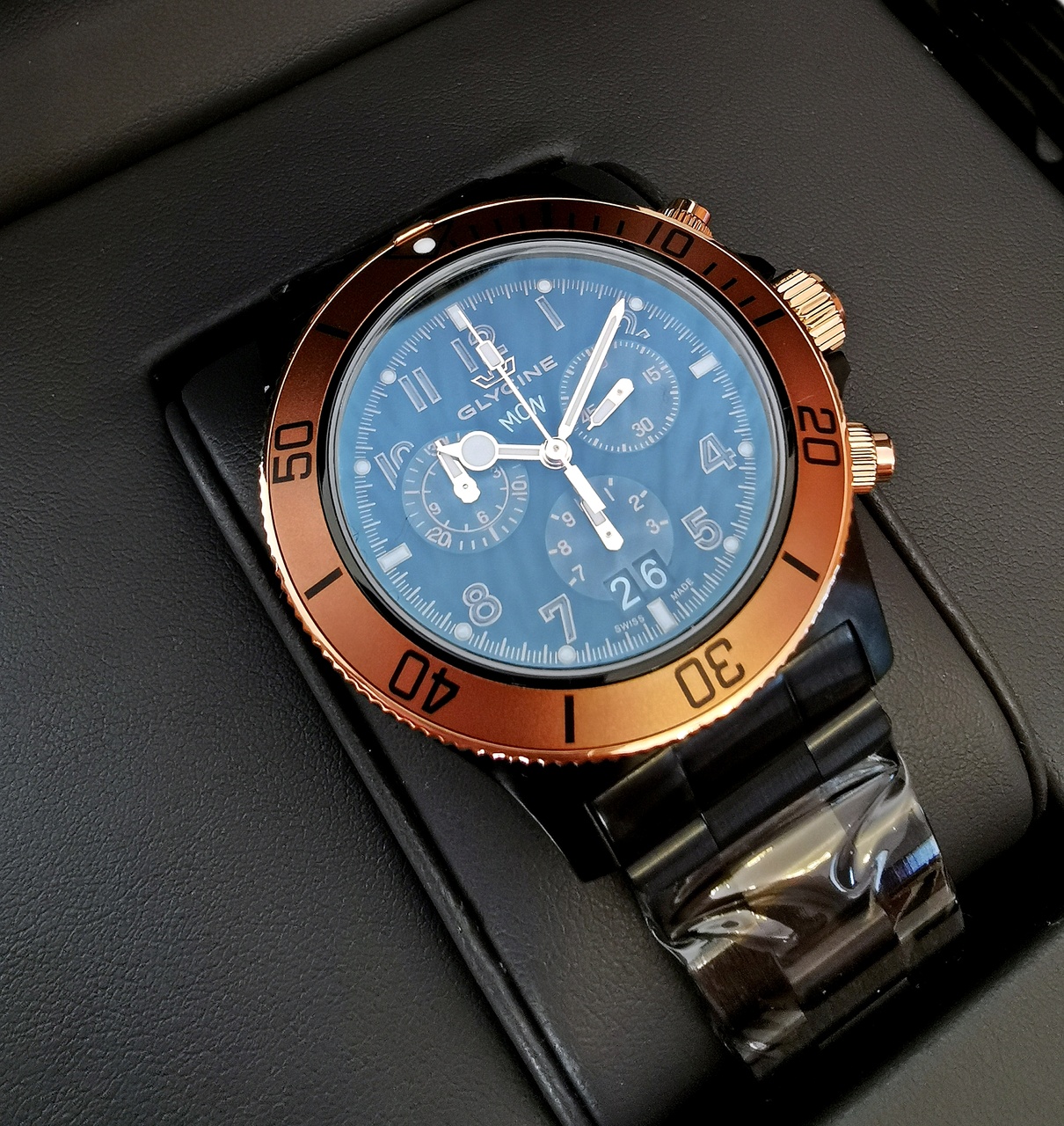 Мужские часы Glycine Combat 42 мм, браслет, 20атм.